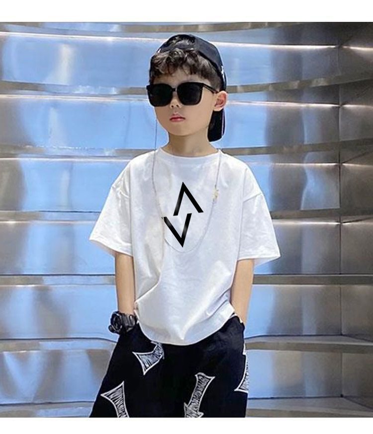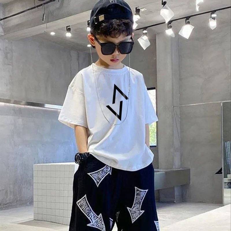 Летняя детская белая футболка с коротким рукавом для мальчиков, 2024 года, оверсайз, в корейском стиле
