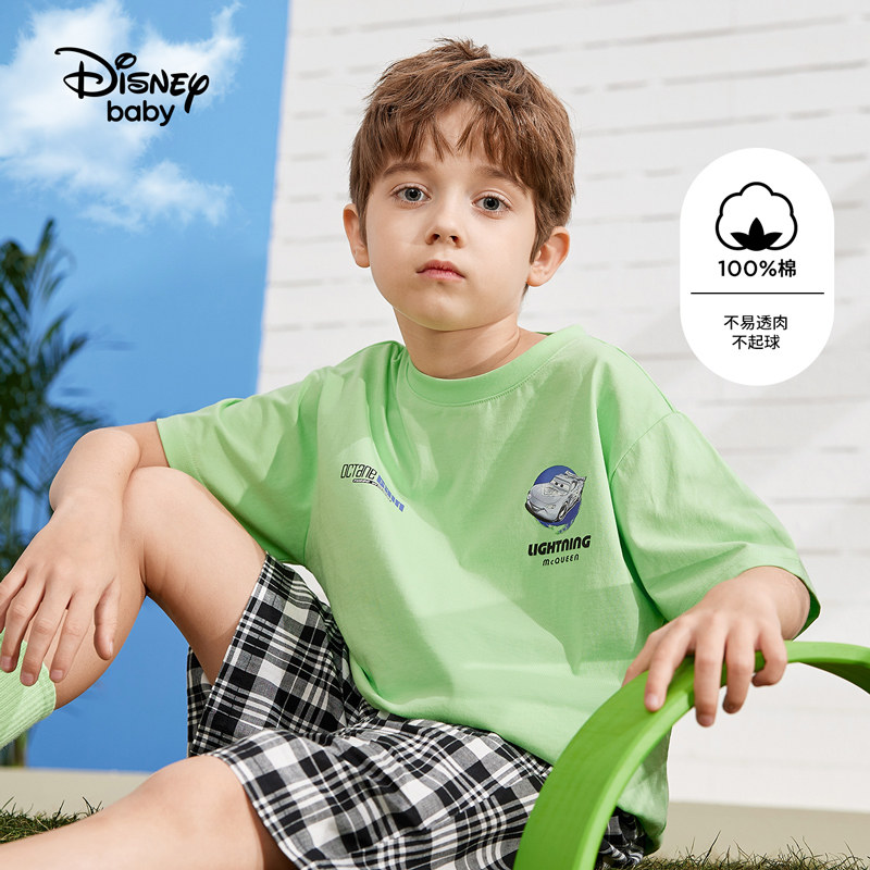 Дисней, детская летняя хлопковая футболка с коротким рукавом подходит для мужчин и женщин, детская одежда, в западном стиле
