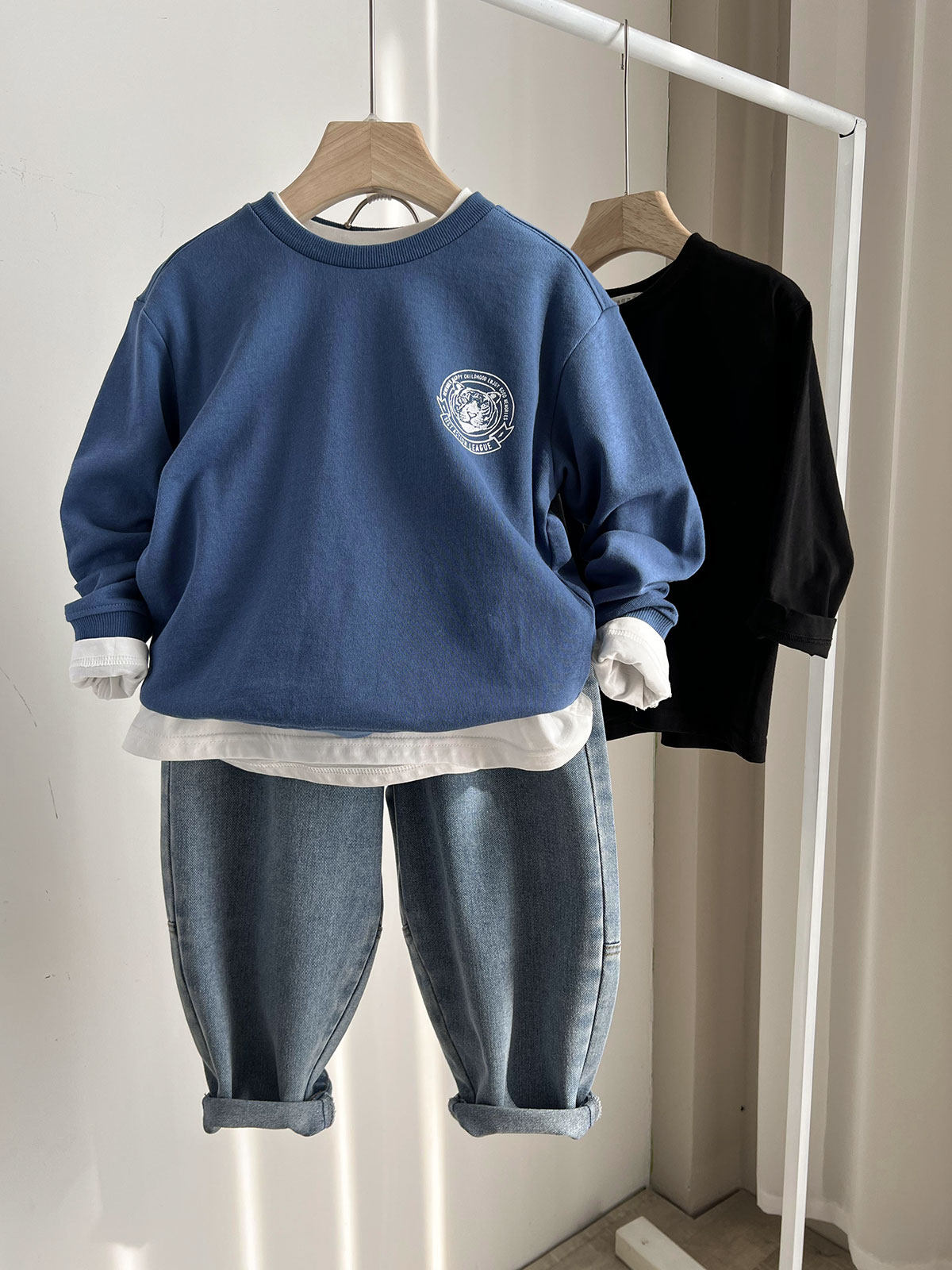 Детский хлопковый базовый приятный телу осенний лонгслив подходит для мужчин и женщин с круглым воротником, подходит для подростков