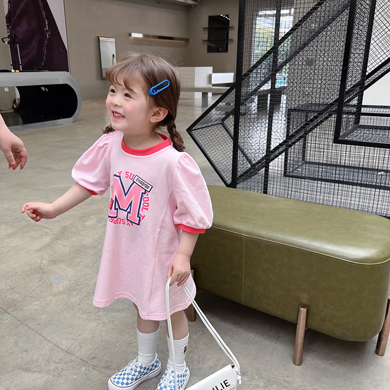 Хлопковая спортивная юбка на девочку, платье, длинная футболка, летняя летняя одежда, детская одежда, в западном стиле, длина миди