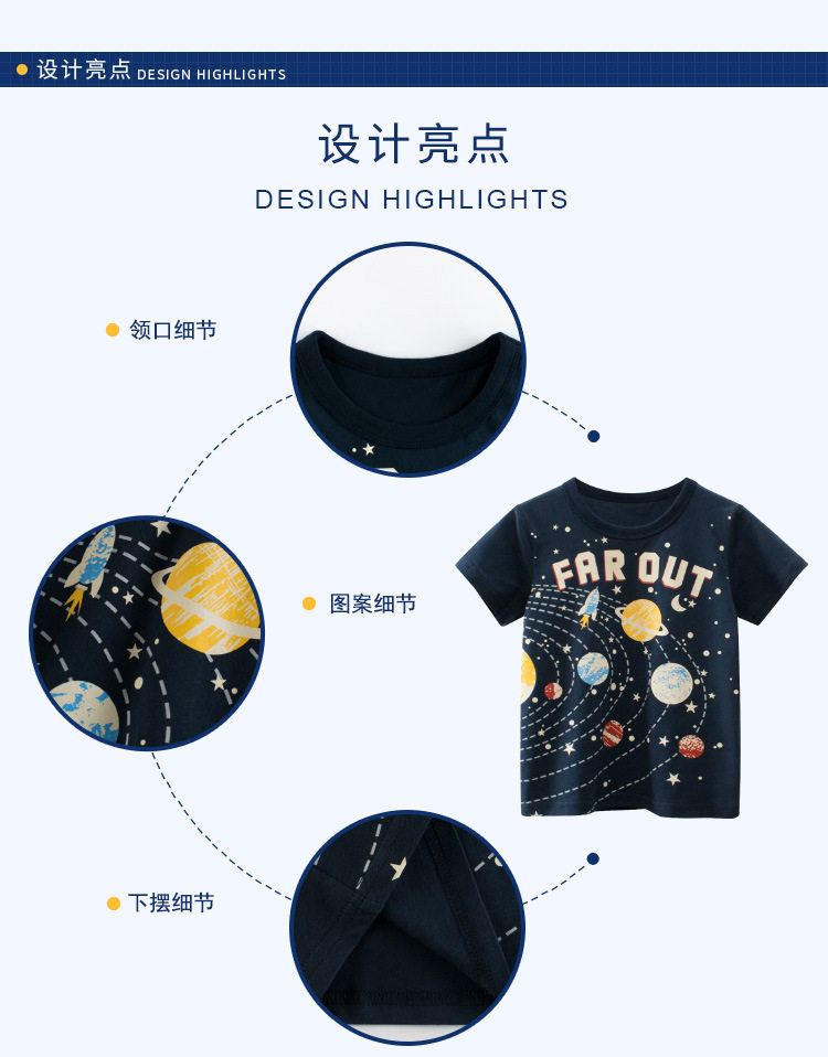 Хлопковая летняя детская футболка с коротким рукавом для мальчиков на солнечной энергии