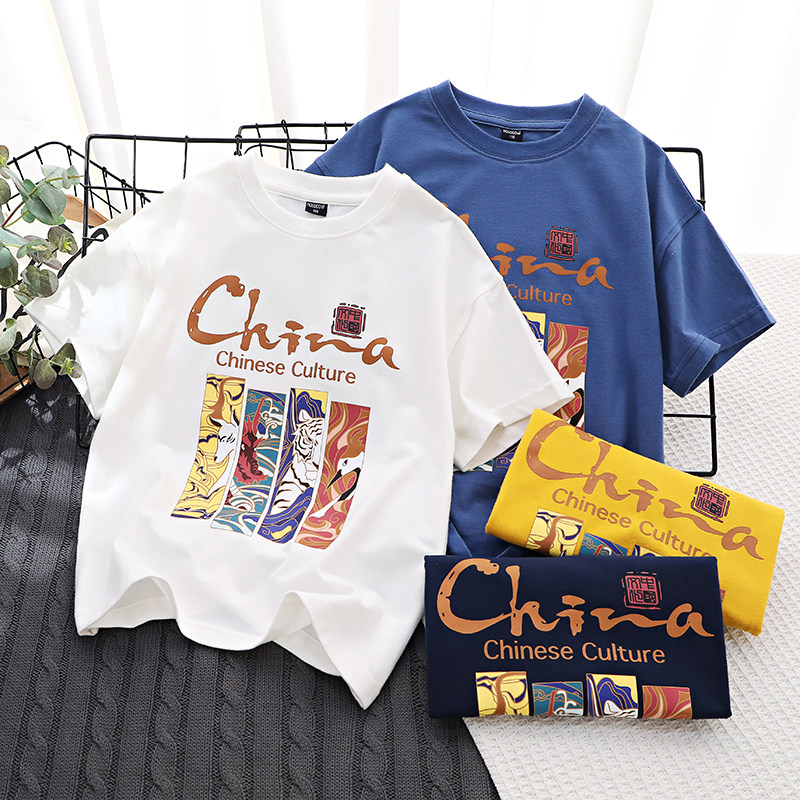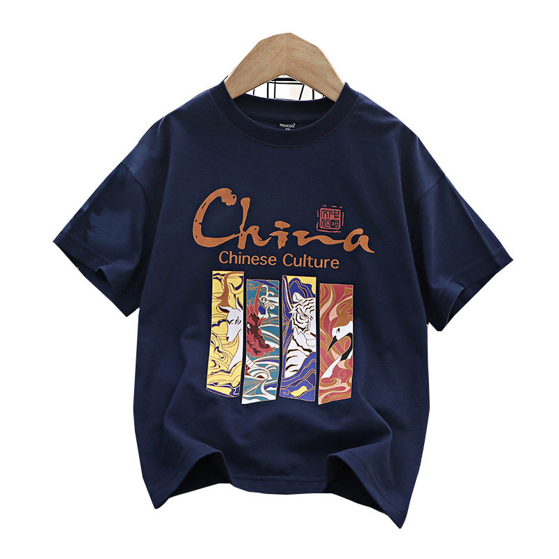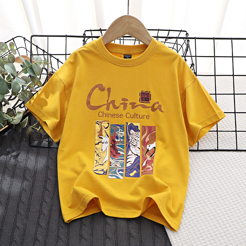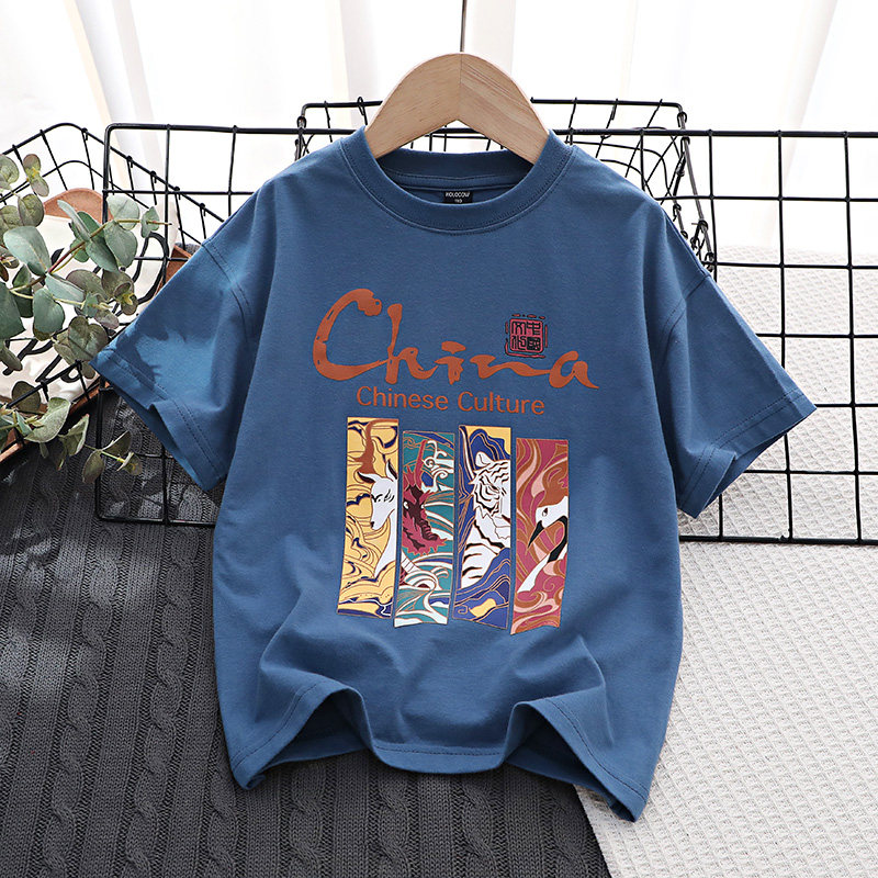 Китайский детский трансформер, хлопковая детская футболка с коротким рукавом для мальчиков, подходит для подростков, детская одежда
