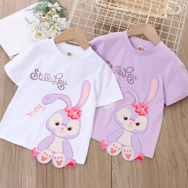 Хлопковая летняя тонкая детская мультяшная трехмерная футболка с коротким рукавом с круглым воротником, в западном стиле