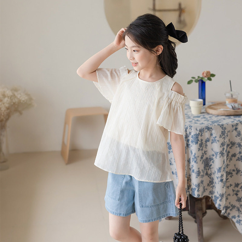 Девочки с короткими рукавами летние свободы и модная детская детская детская детская детская детская одежда Летнее стиль 2023