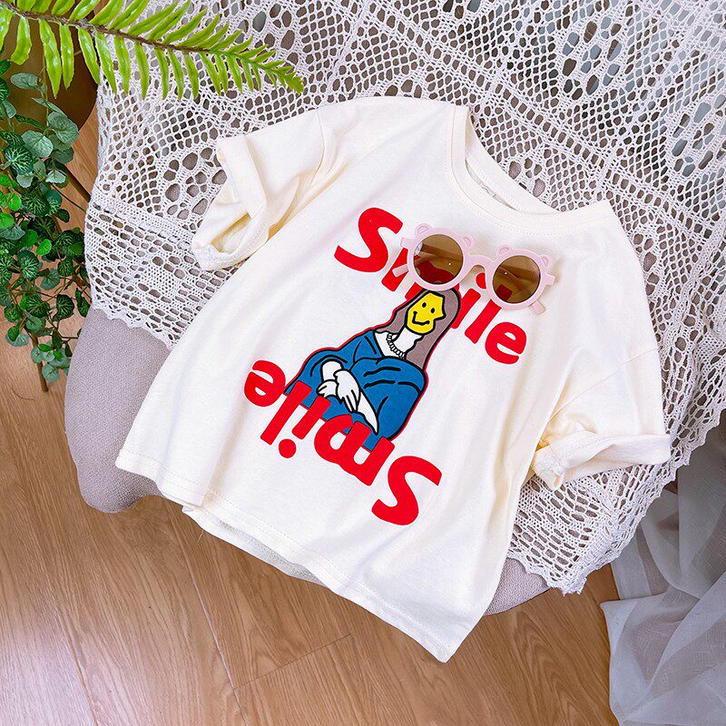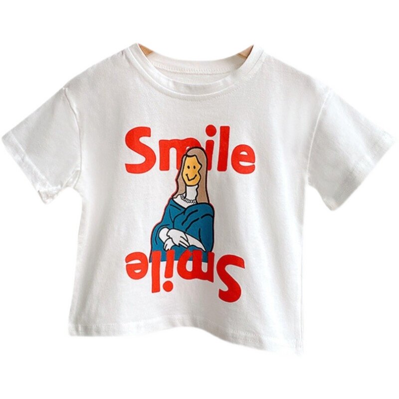 Хлопковая летняя детская футболка с круглым воротником, в корейском стиле, короткий рукав