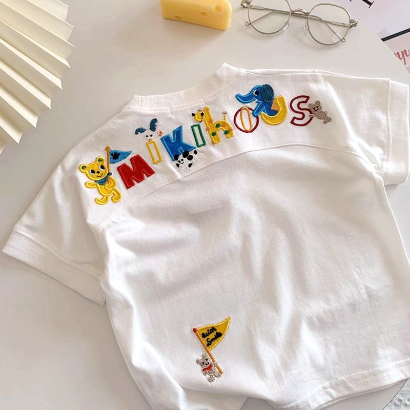 Хлопковая летняя тонкая мультяшная футболка для мальчиков, милая детская летняя одежда, с вышивкой