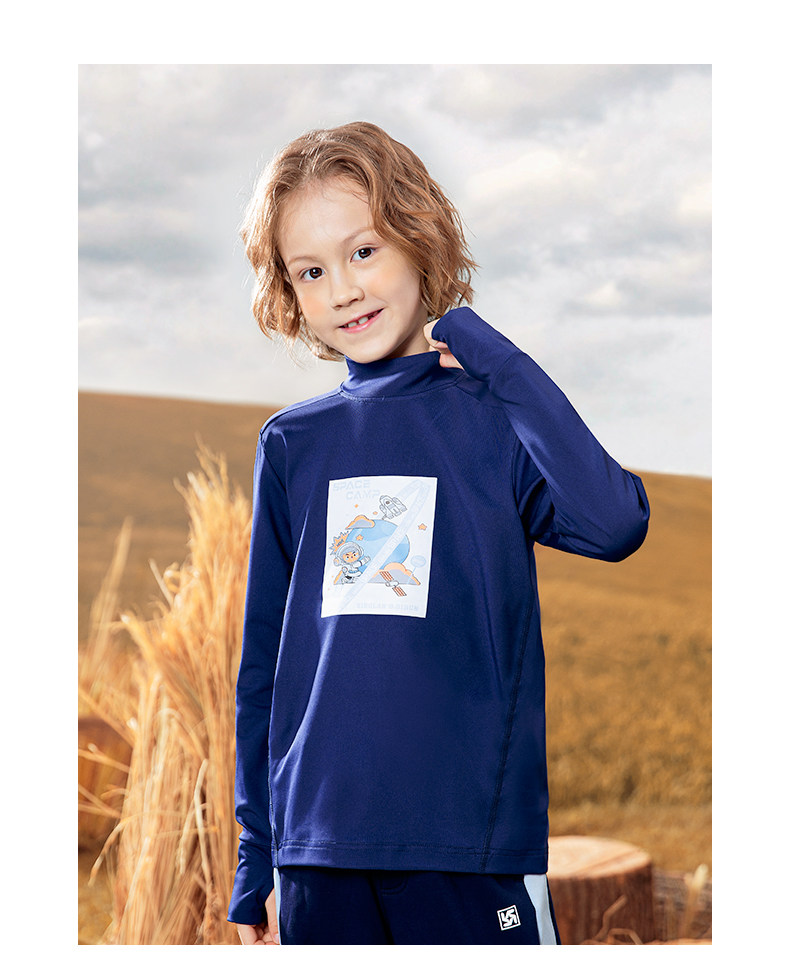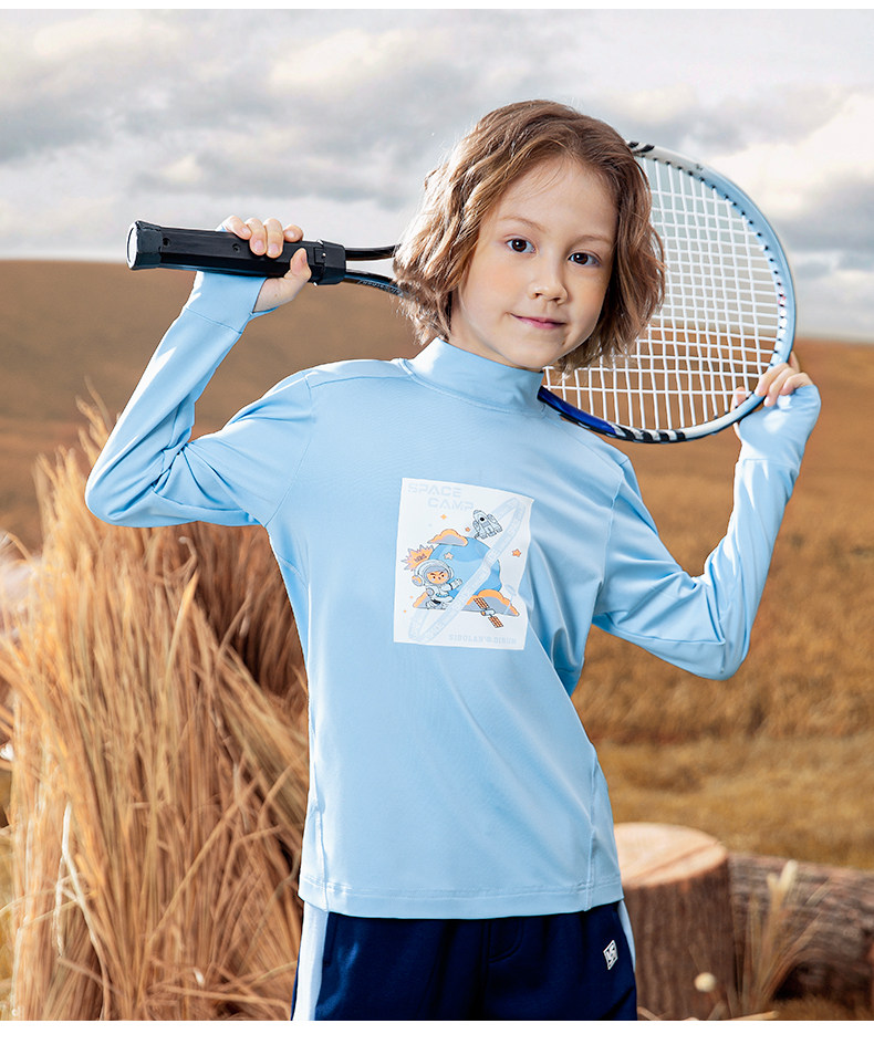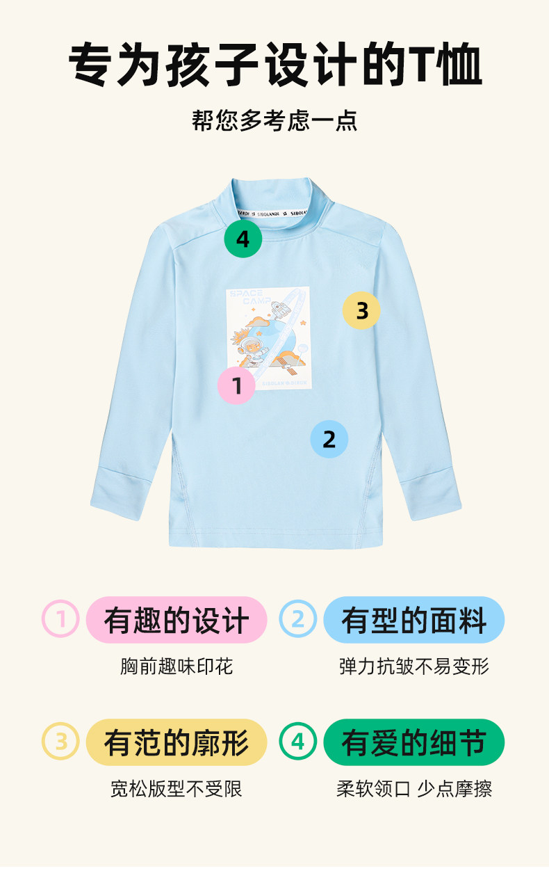 斯博兰帝 Детская базовая рубашка, осенний лонгслив, футболка, высокий воротник, подходит для подростков