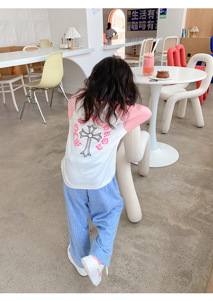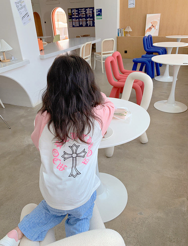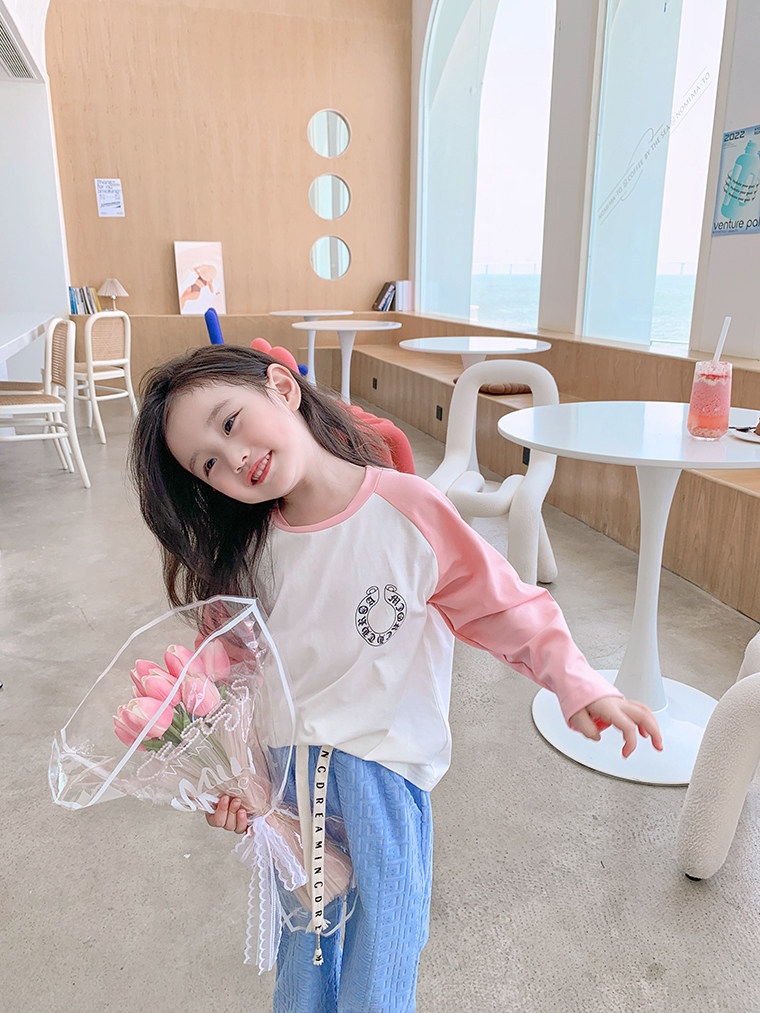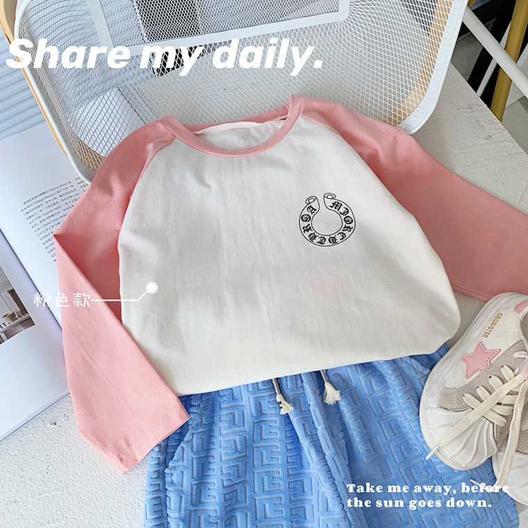 Хлопковый детский осенний лонгслив, Гонконг, в корейском стиле, в западном стиле, коллекция 2022
