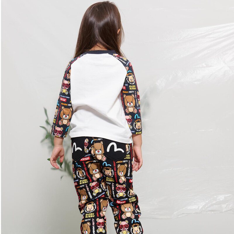 Детская модная хлопковая футболка EVISU с длинными рукавами и изображением чайки и медведя 2EAKZG2TL516XXCT