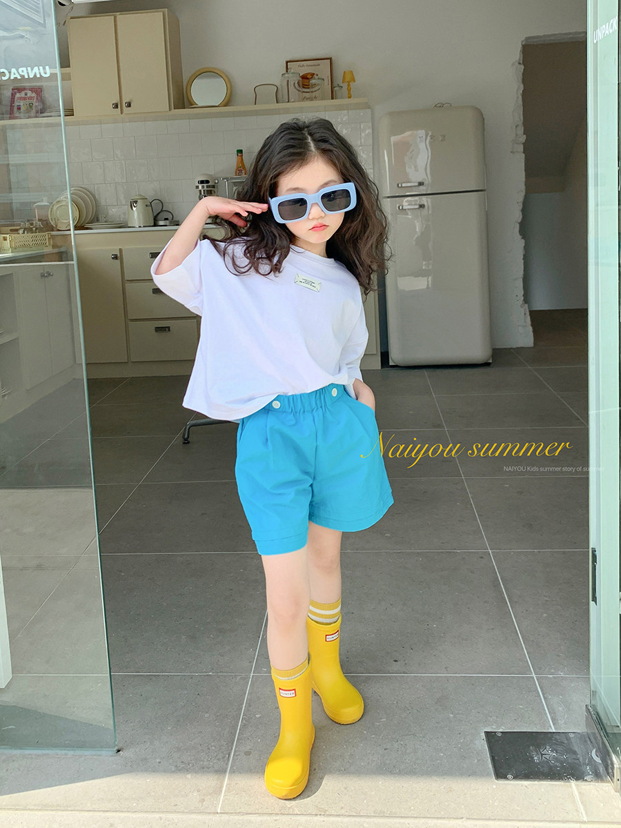 Кремовая летняя летняя одежда, детская базовая приятная телу футболка с коротким рукавом, детская одежда, коллекция 2023, в западном стиле