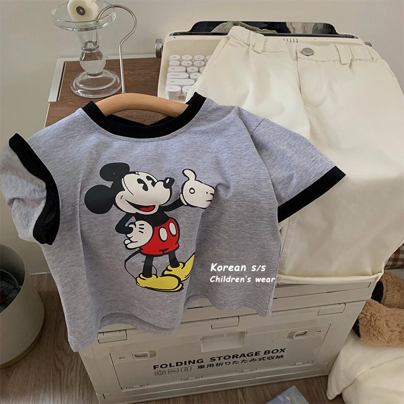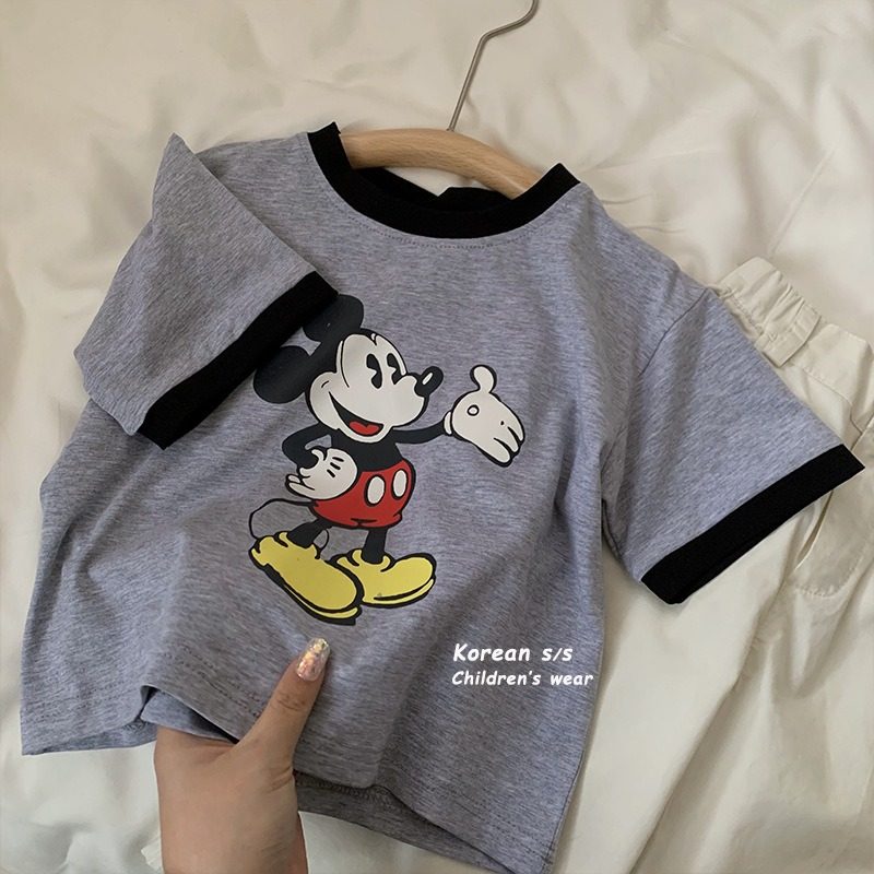 Детская летняя мультяшная футболка для мальчиков, в корейском стиле, короткий рукав