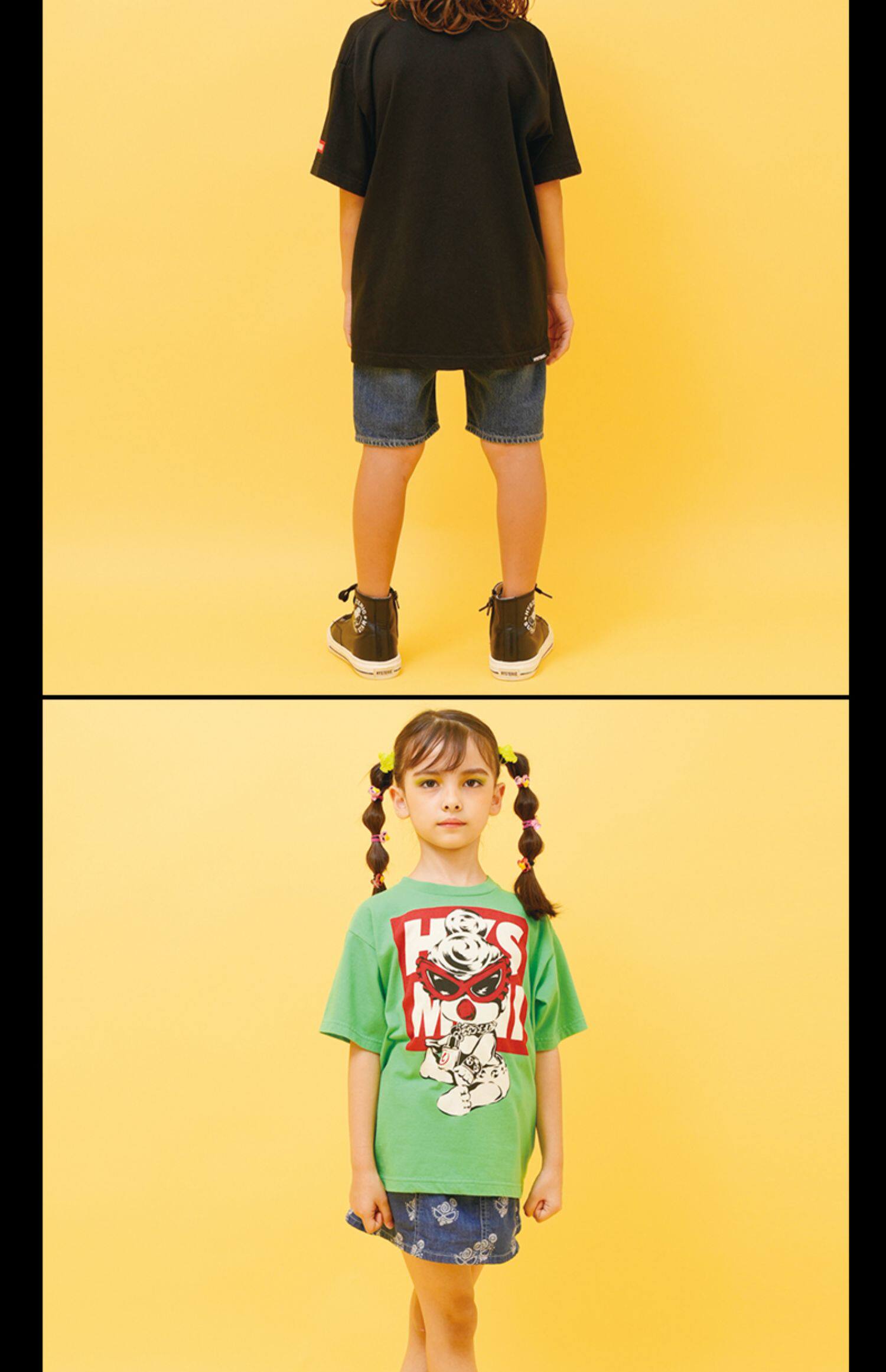 Черно -качающийся короткий -костюма T -Fish Hysteric Mini японская детская детская одежда мужчина для девочки хлопка -приготовленная печать летние новые продукты