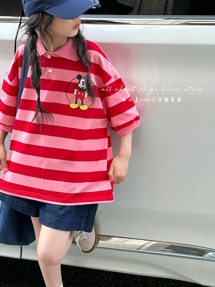 Футболка polo, детская летняя одежда, коллекция 2023, в корейском стиле, оверсайз, короткий рукав, в западном стиле, подходит для подростков