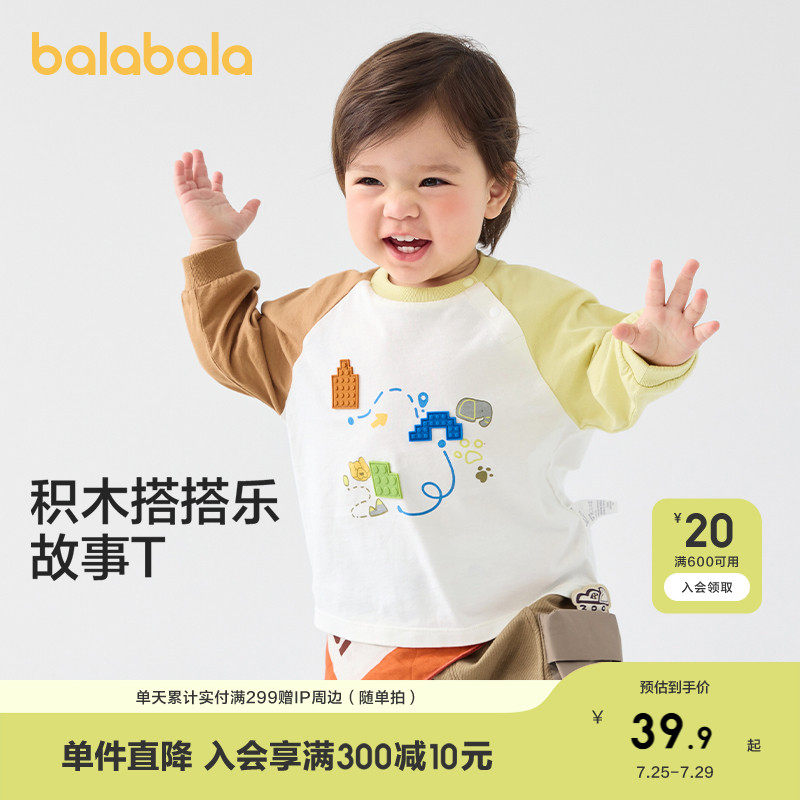 巴拉巴拉 Детская футболка, детский базовый приятный телу весенний лонгслив, детская одежда