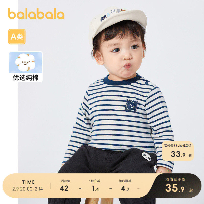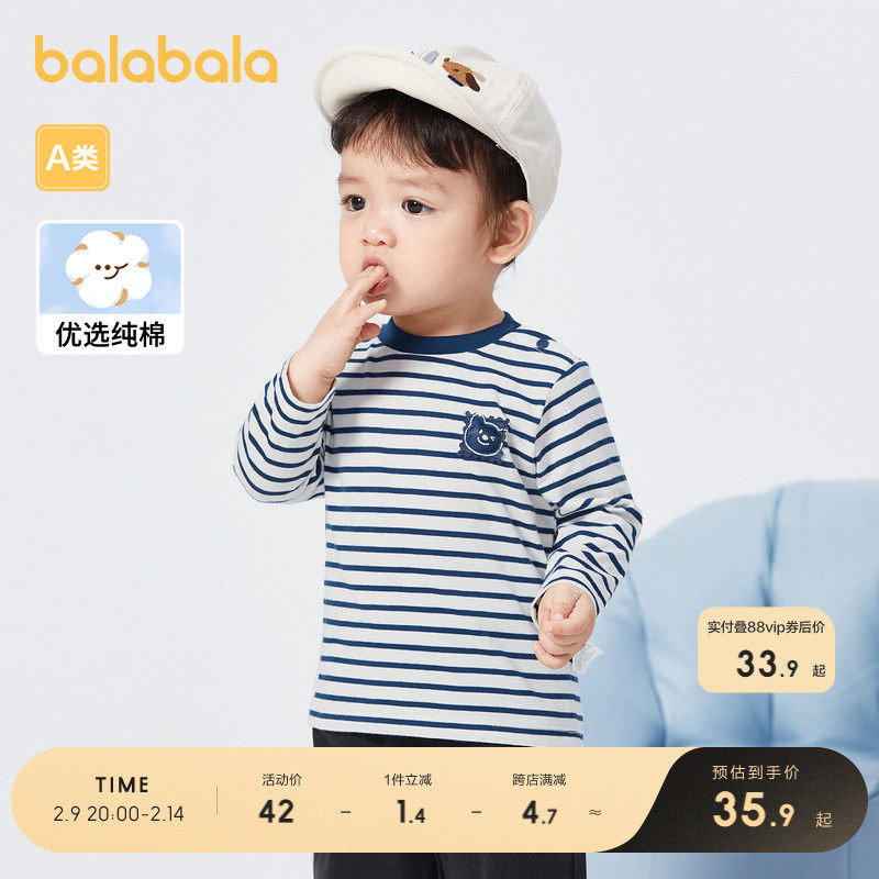 [Тот же стиль в торговых центрах] Balabala детская футболка для мальчиков с длинными рукавами для девочек топы нижняя рубашка милый стиль