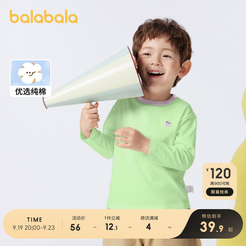 巴拉巴拉 Детский осенний базовый приятный телу лонгслив для мальчиков, детская одежда