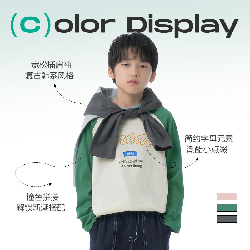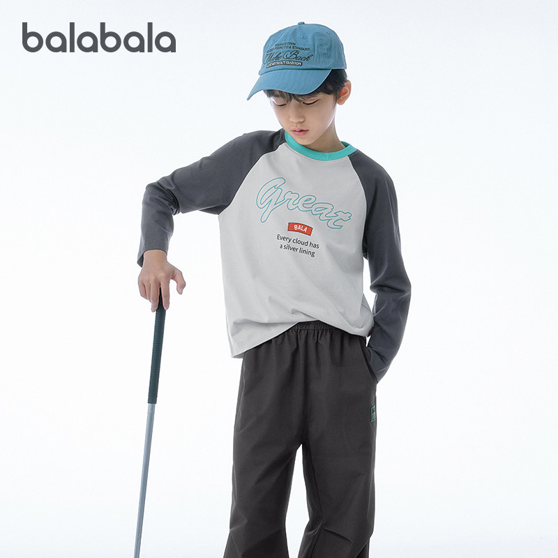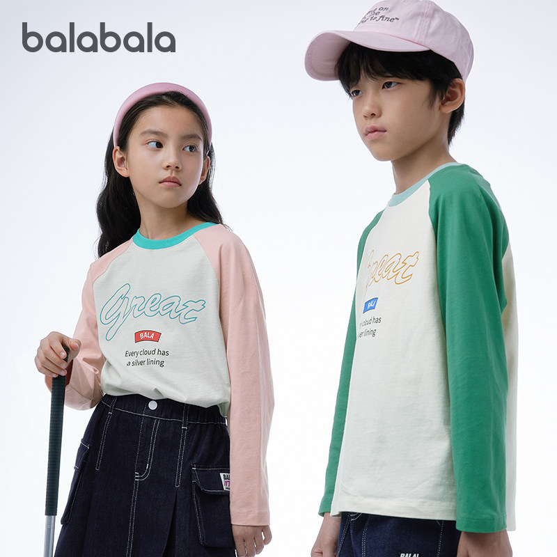 巴拉巴拉 Детский хлопковый лонгслив с круглым воротником, детская одежда, оверсайз, подходит для подростков