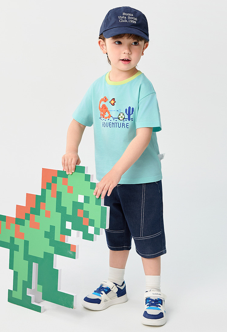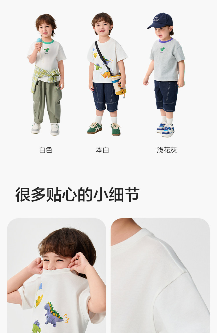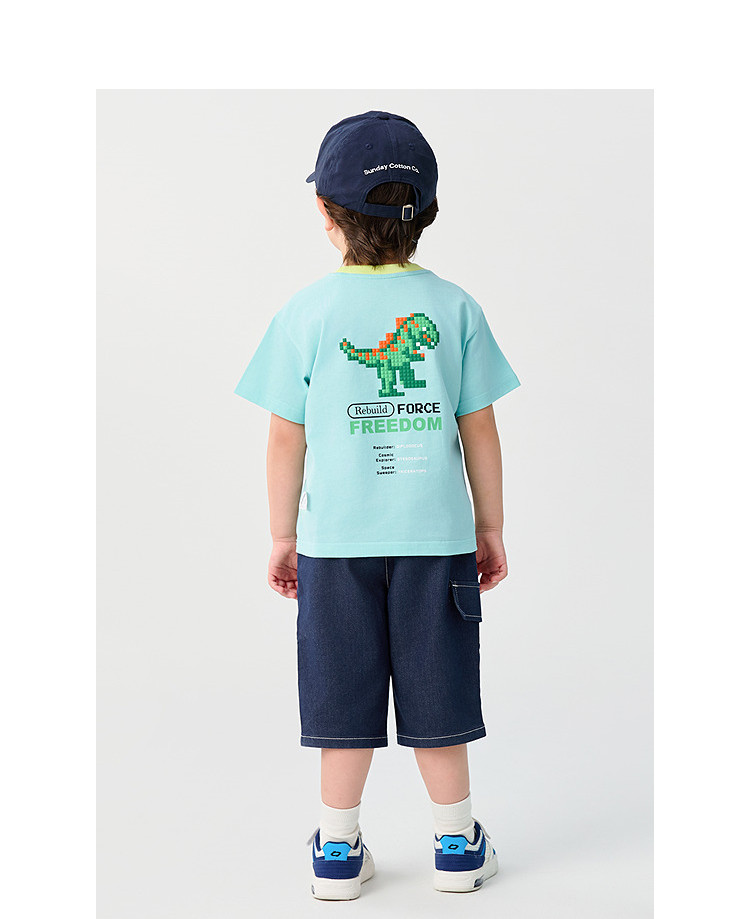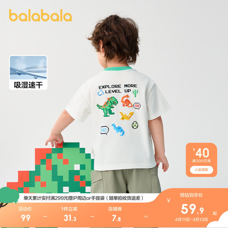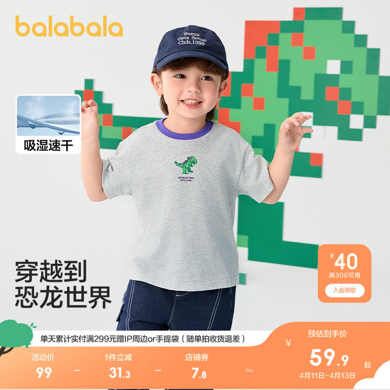 巴拉巴拉 Детская быстросохнущая хлопковая футболка с коротким рукавом для мальчиков, летний динозавр, детская одежда