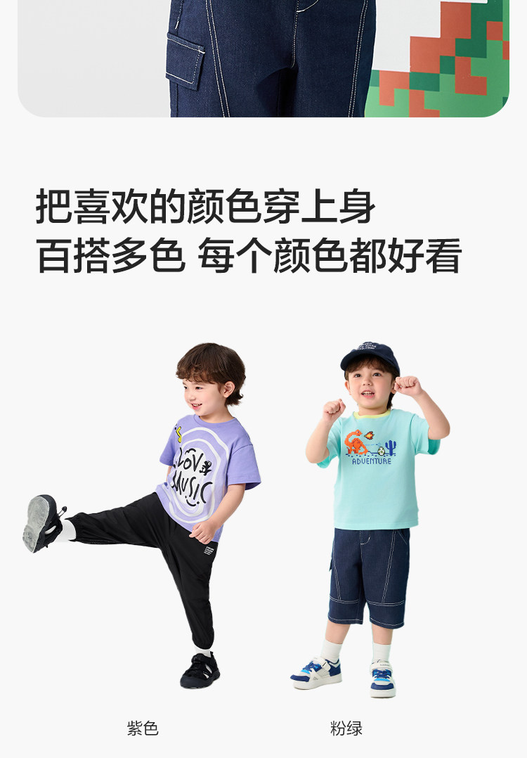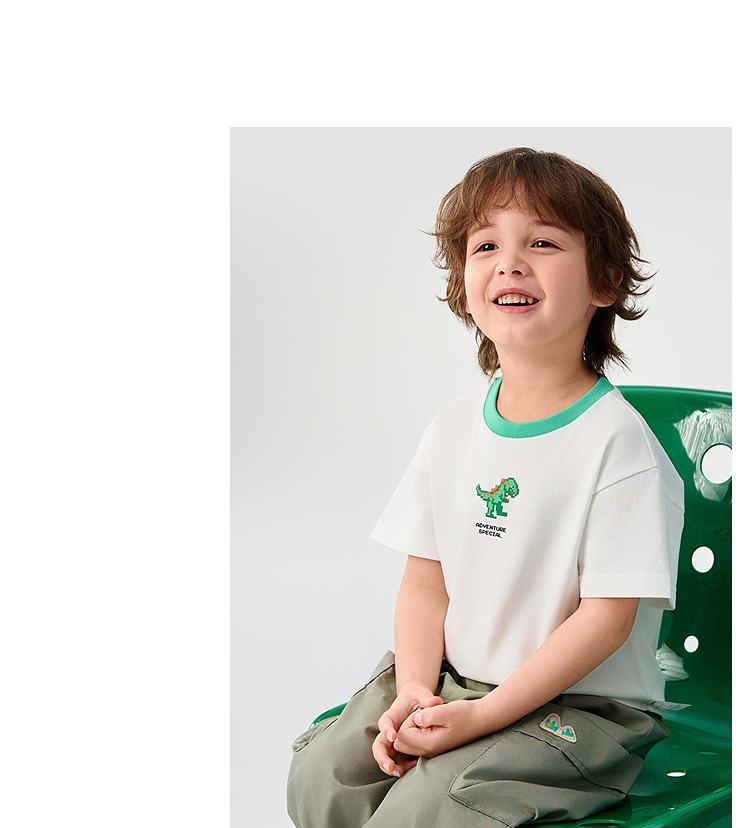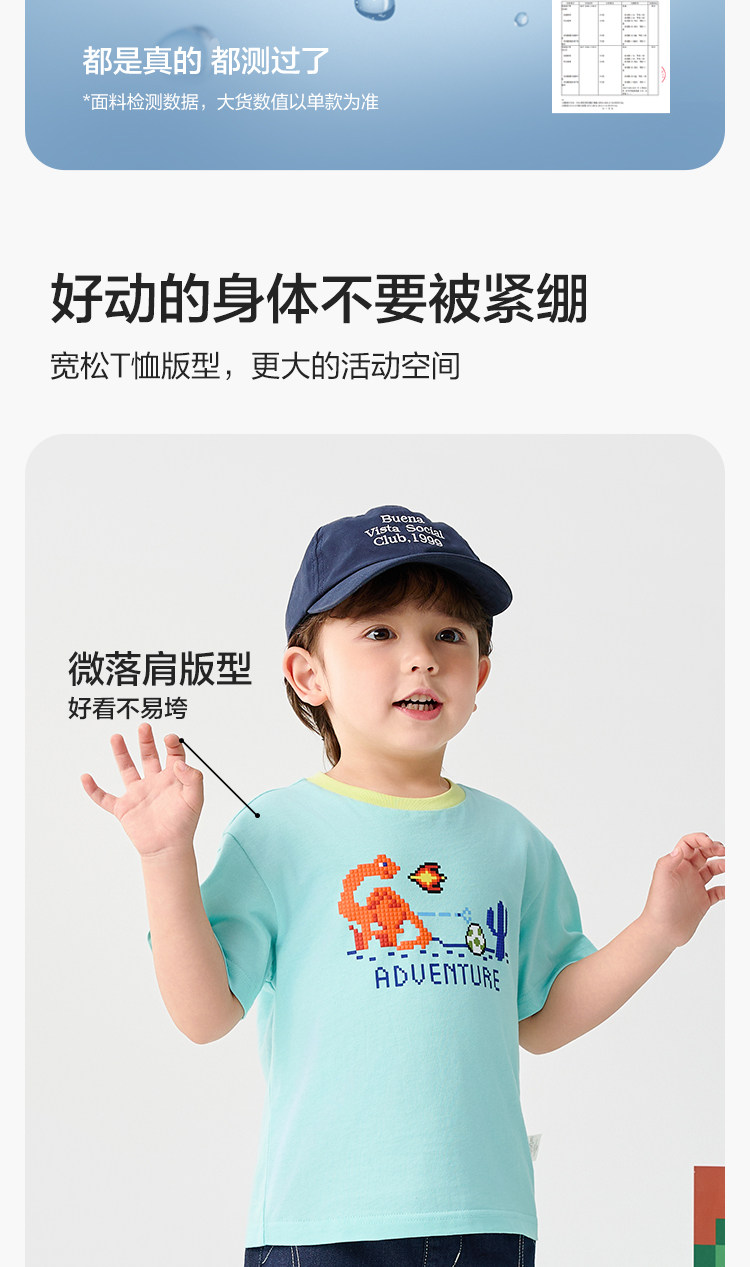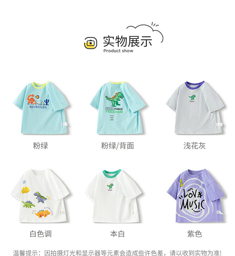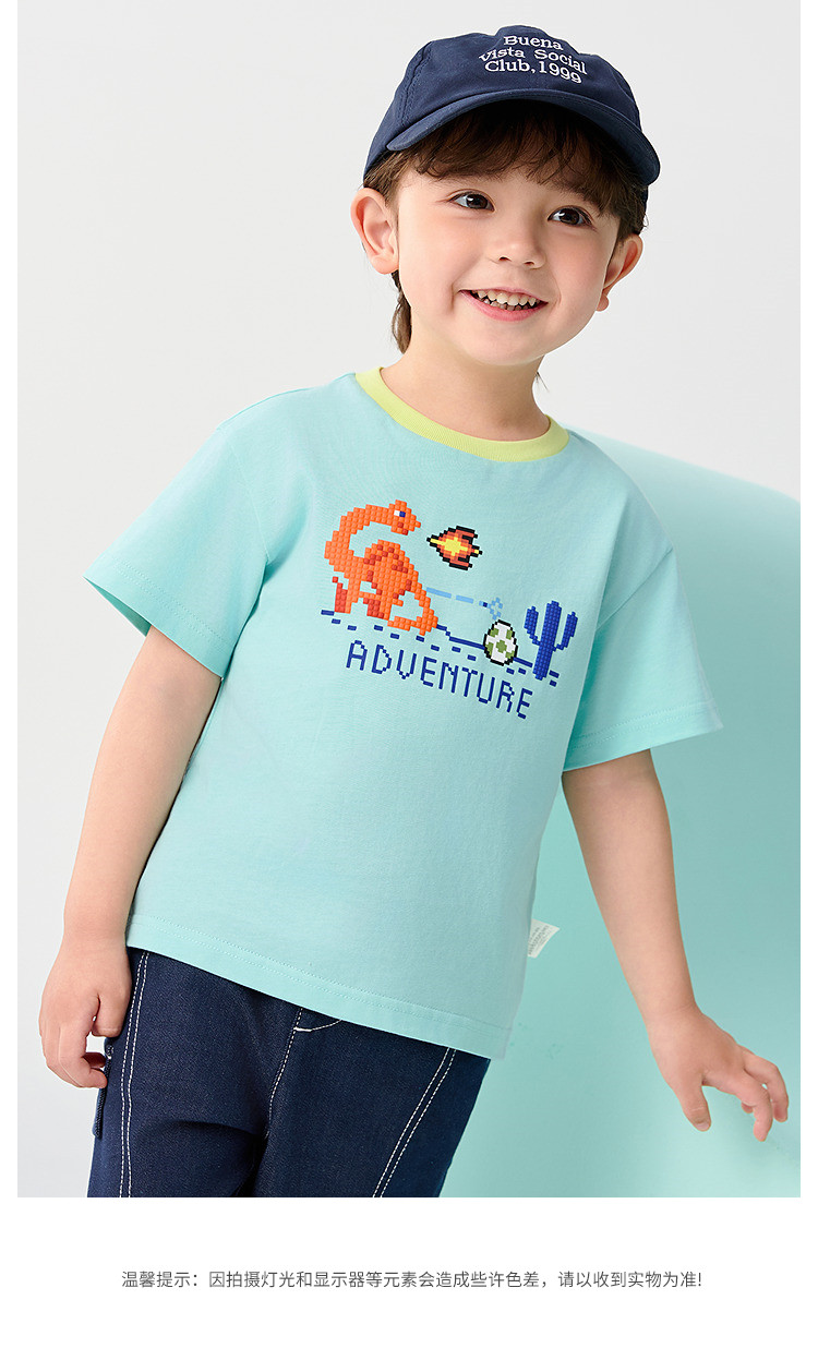 巴拉巴拉 Детская быстросохнущая хлопковая футболка с коротким рукавом для мальчиков, летний динозавр, детская одежда