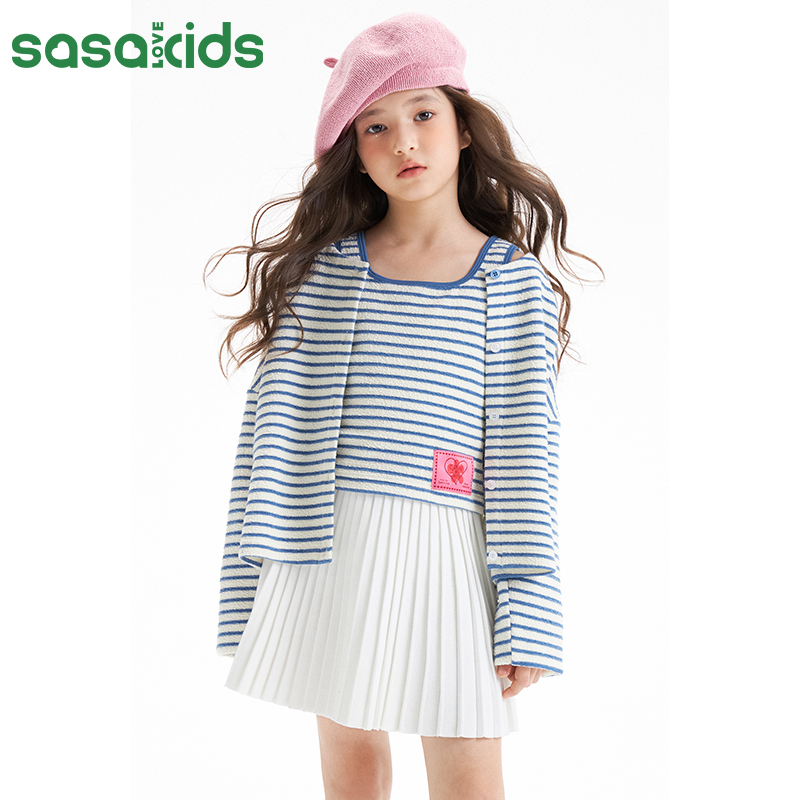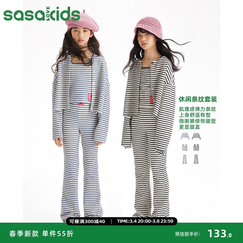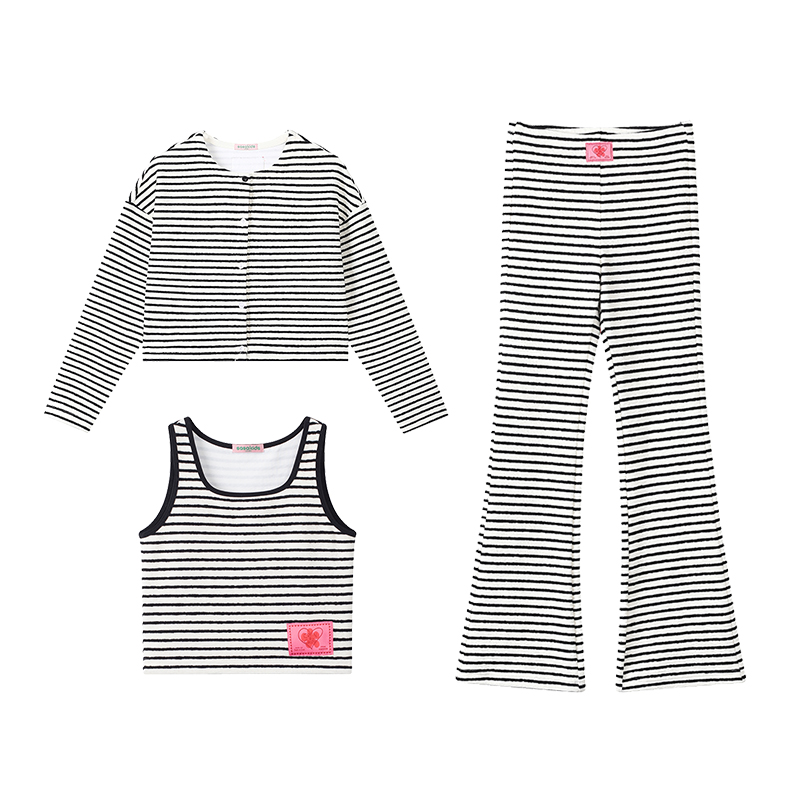 Сасакиды текстура полосатых бомб, свободная рубашка с круглой шеей+подключенная u -collar жилет+микро -пенсы повседневный набор