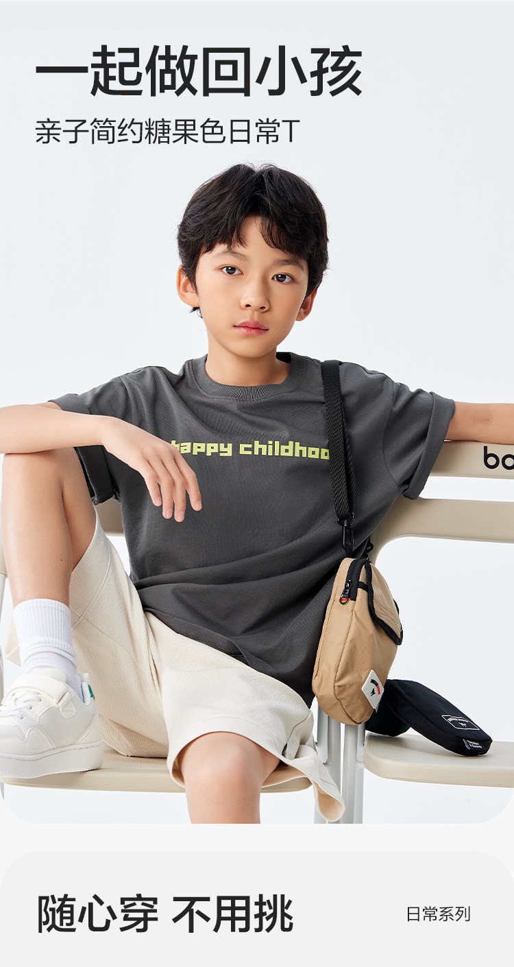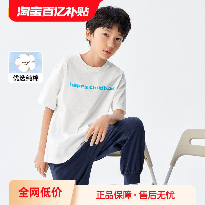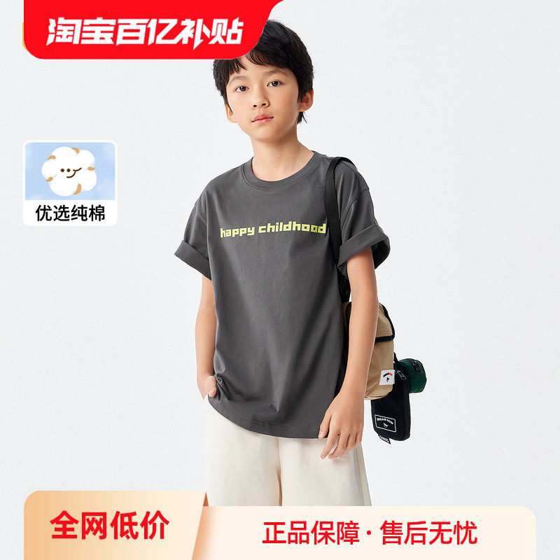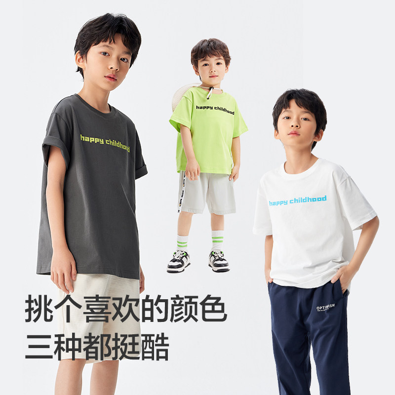 巴拉巴拉 Детская хлопковая футболка для мальчиков, детская одежда, семейный стиль, короткий рукав, подходит для подростков