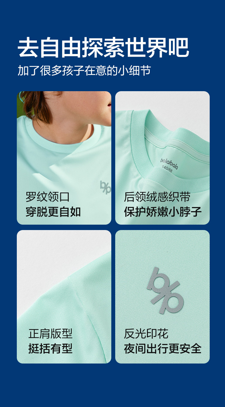巴拉巴拉 Летняя одежда, футболка с коротким рукавом, детская быстросохнущая летняя форма, подходит для подростков