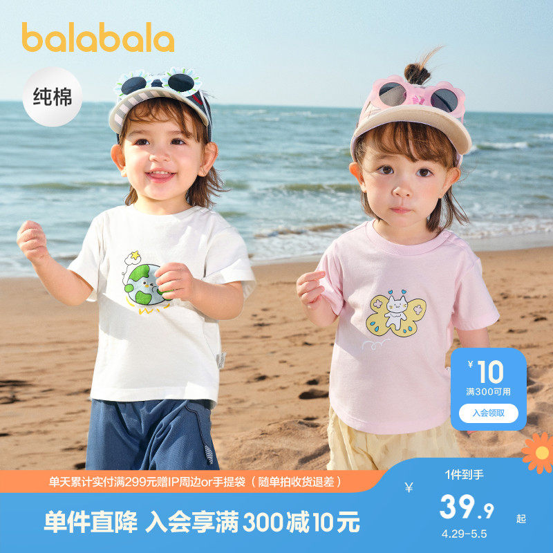 巴拉巴拉 Детская футболка с коротким рукавом для мальчиков, летняя хлопковая летняя одежда, детская одежда