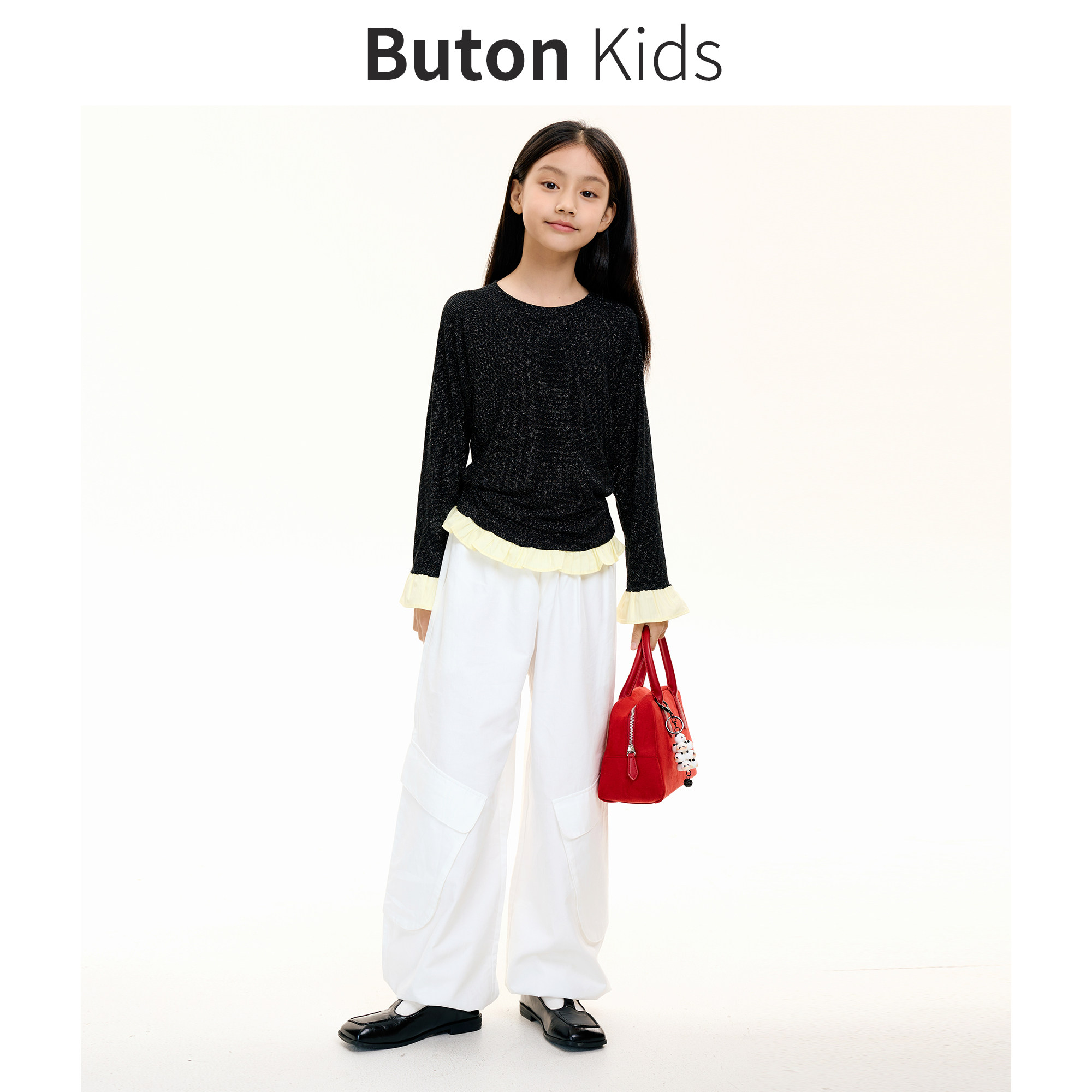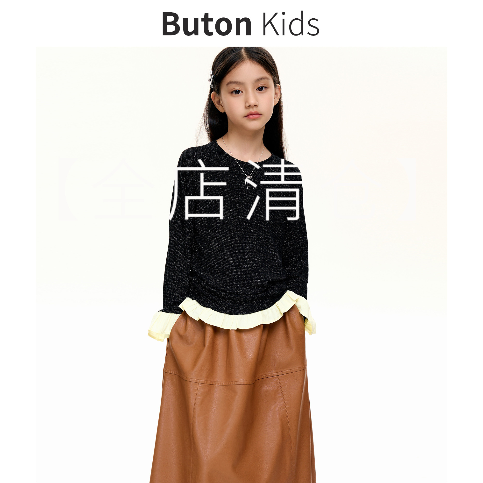 1-3% скидка Butonkids Девочки, контрастируя с кружевным топом 2024