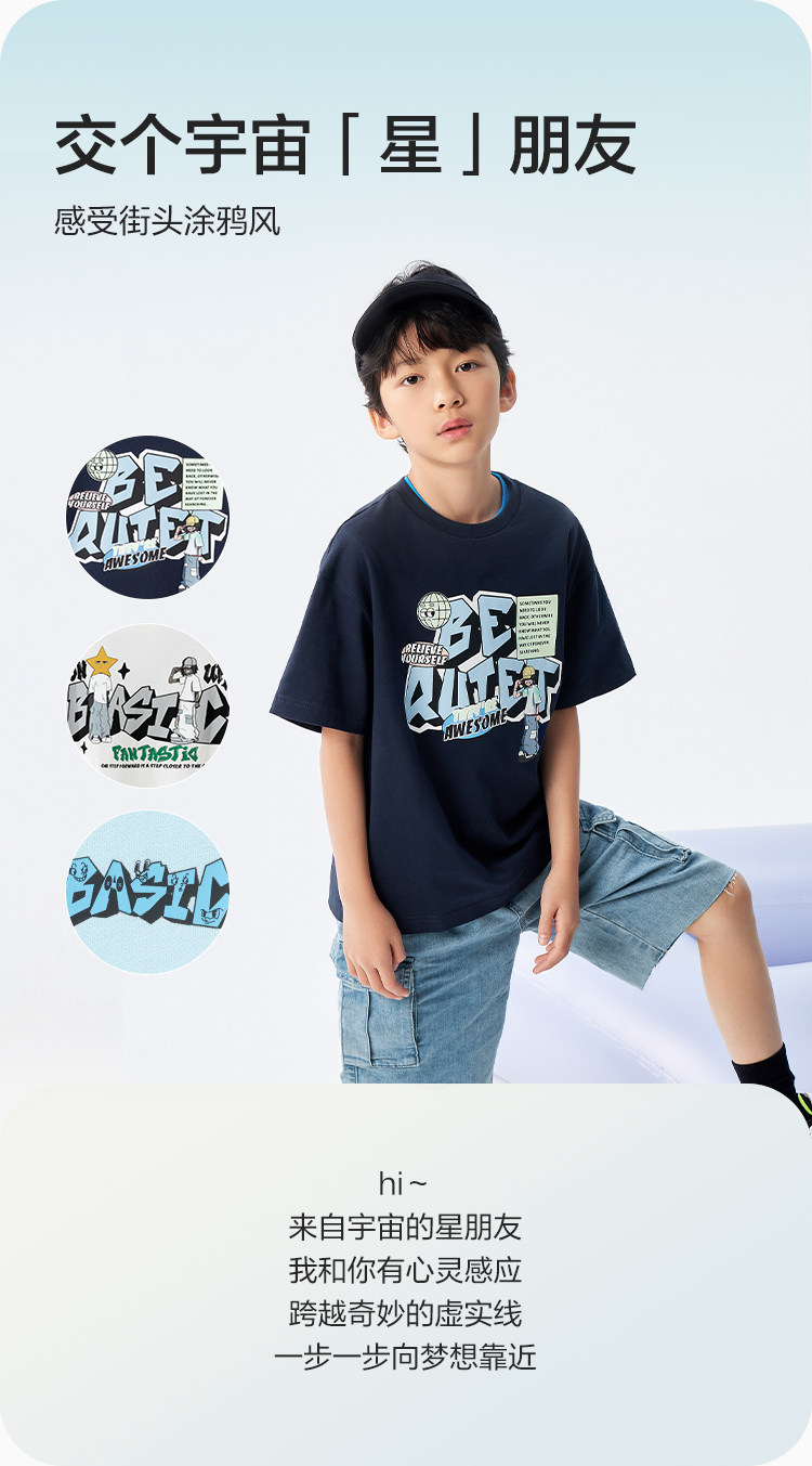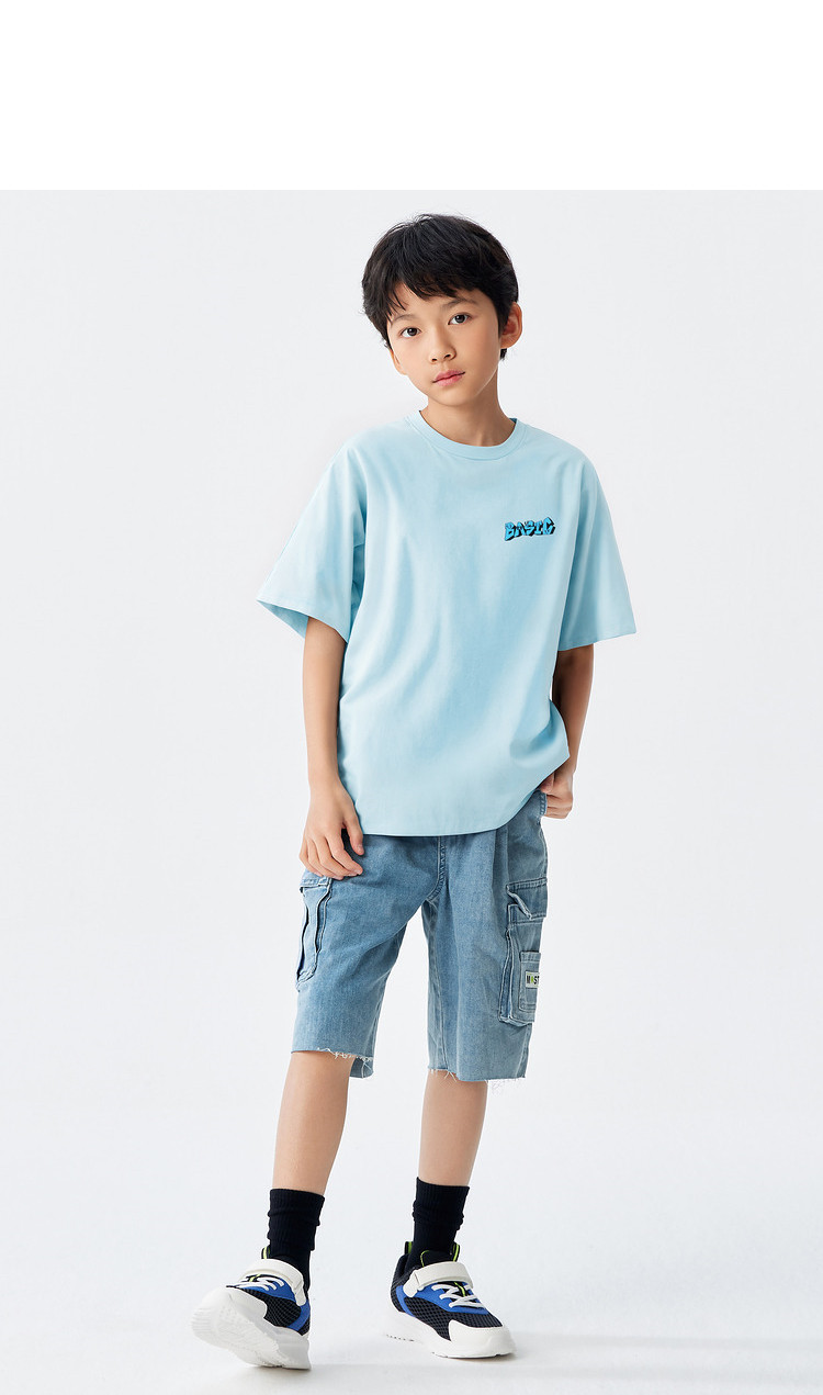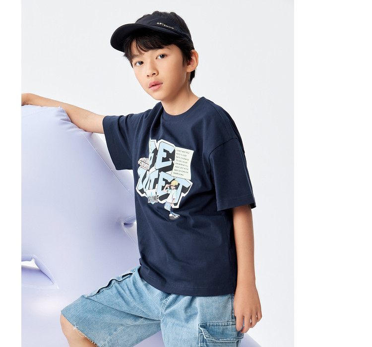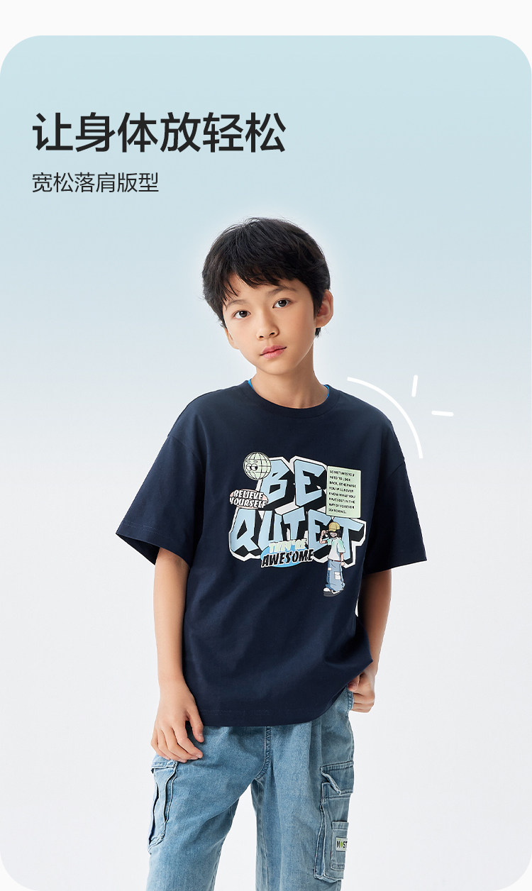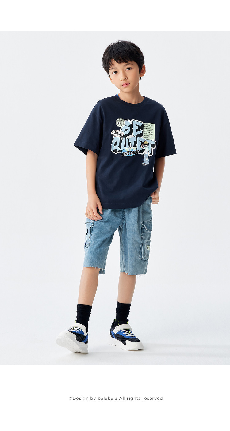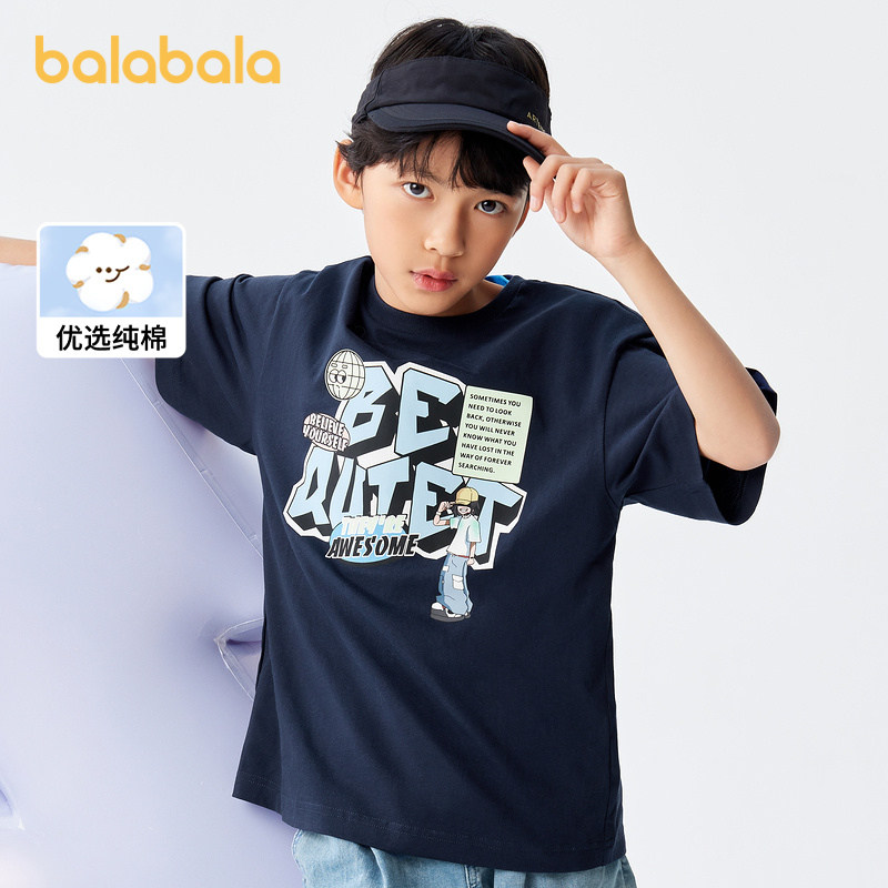 巴拉巴拉 Детская летняя одежда, летняя хлопковая футболка с коротким рукавом, короткий рукав, подходит для подростков