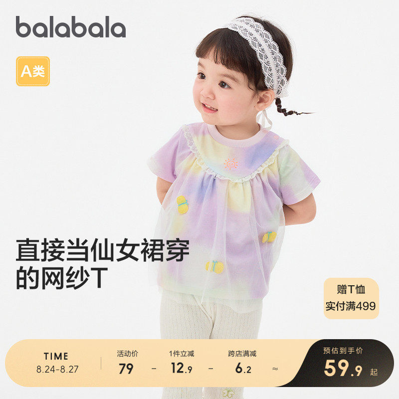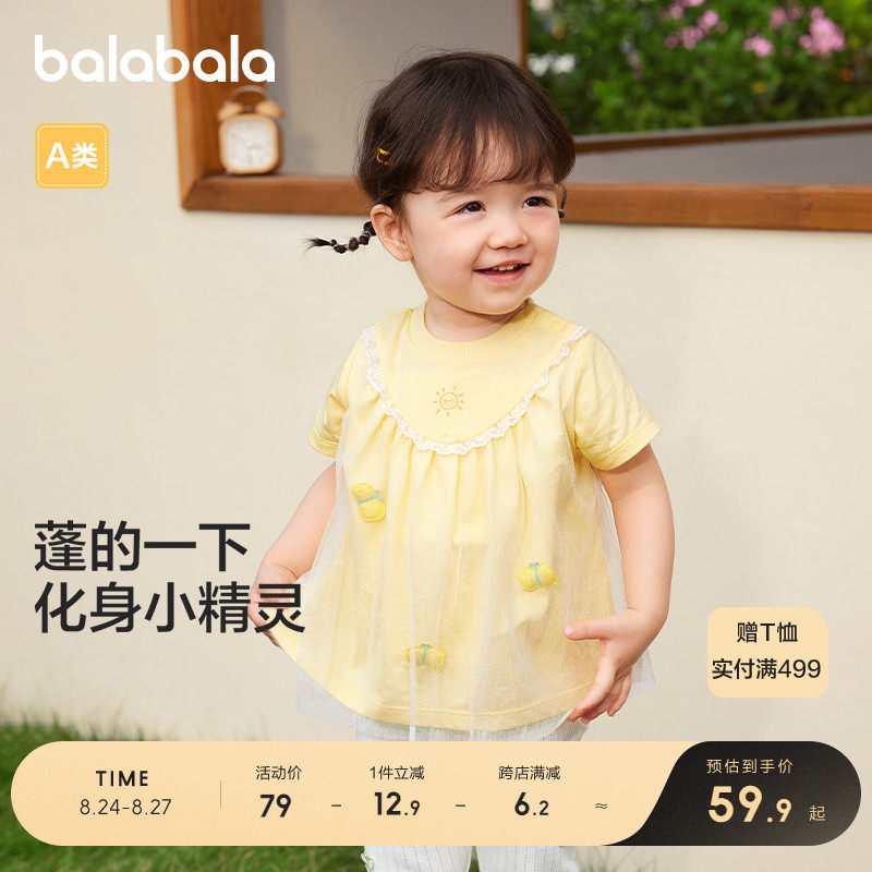 巴拉巴拉 Детская футболка с коротким рукавом, летняя милая модная хлопковая летняя одежда
