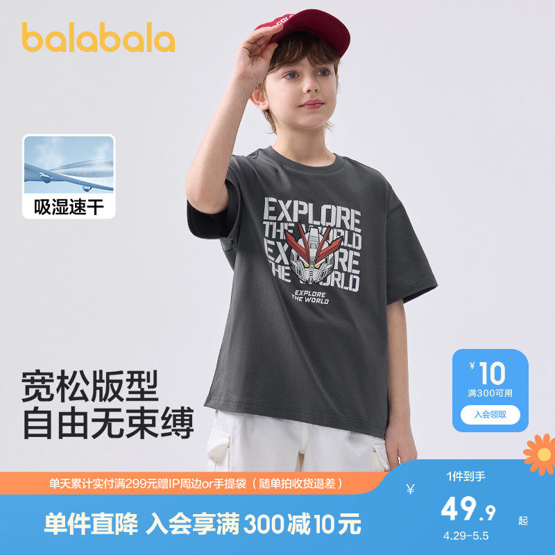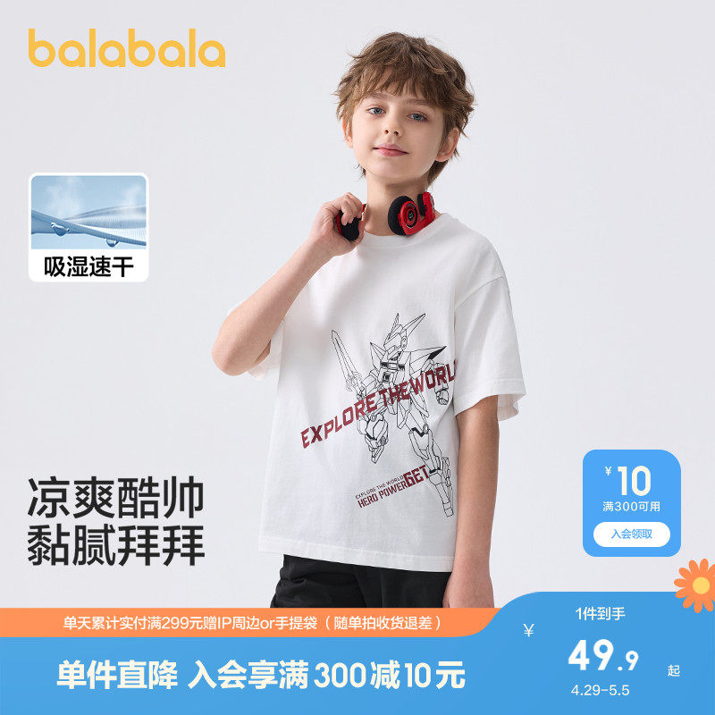 巴拉巴拉 Детская быстросохнущая летняя базовая приятная телу футболка с коротким рукавом для мальчиков, детская одежда, семейный стиль