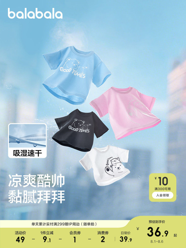 巴拉巴拉 Летняя одежда, летняя детская быстросохнущая футболка с коротким рукавом