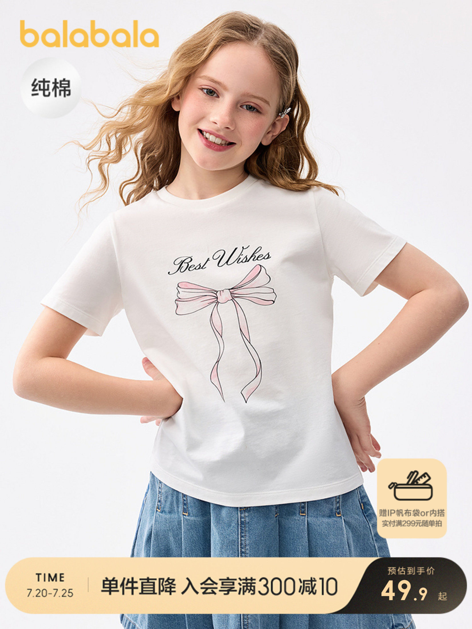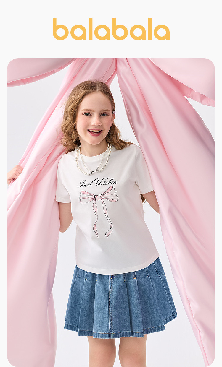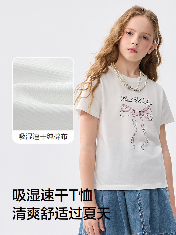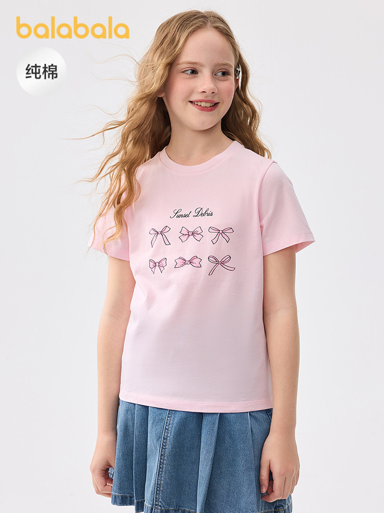 巴拉巴拉 Детская футболка с коротким рукавом, летняя быстросохнущая милая хлопковая летняя одежда, детская одежда, подходит для подростков