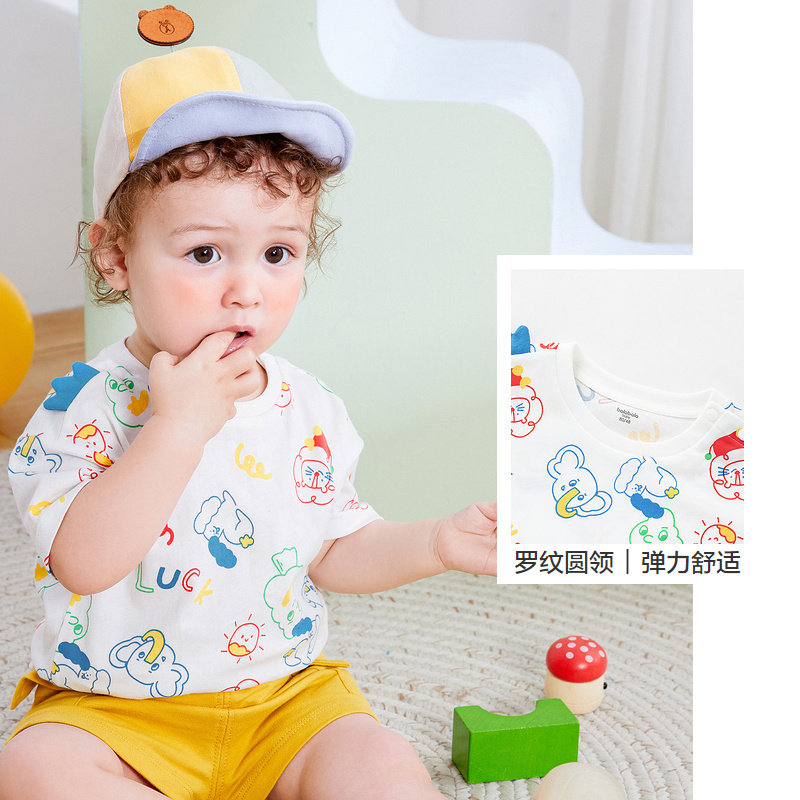 巴拉巴拉 Детская футболка, костюм мальчика цветочника, летняя милая модная летняя одежда, короткий рукав