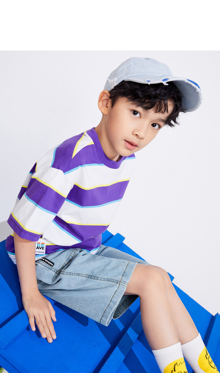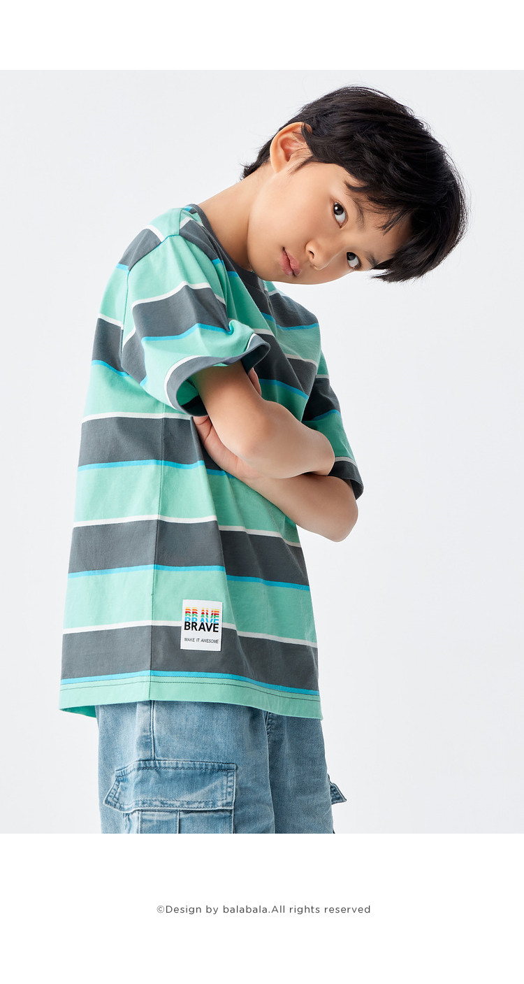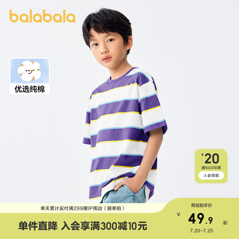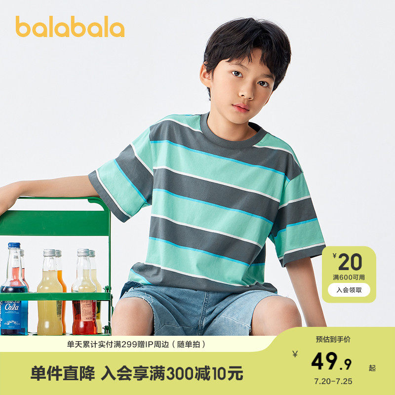 巴拉巴拉 Футболка для мальчиков, летняя детская хлопковая модная базовая приятная телу летняя одежда, детская одежда, короткий рукав, подходит для подростков