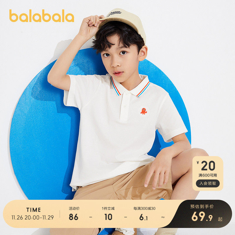 巴拉巴拉 Детская летняя одежда, футболка polo, подходит для подростков, короткий рукав