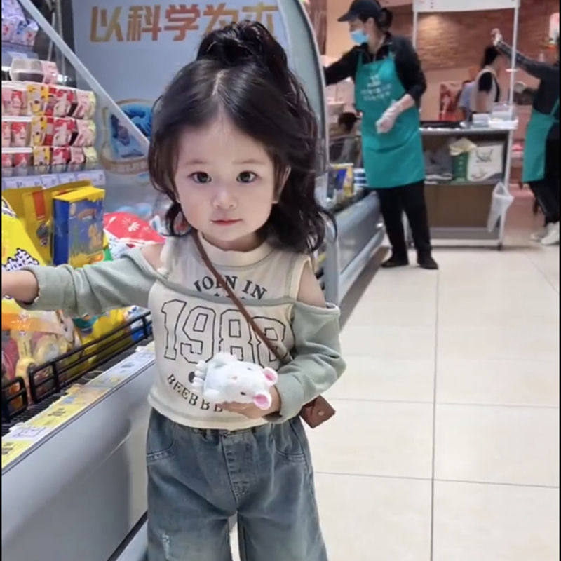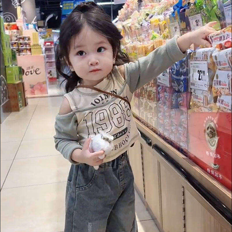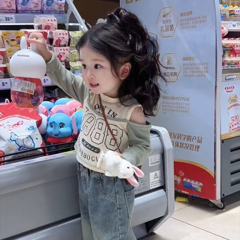 Весенний лонгслив для девочек с буквами, модный детский комплект, детская одежда, в западном стиле