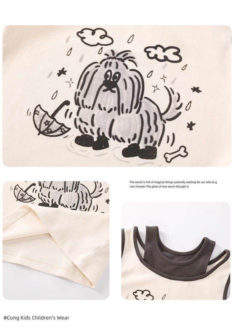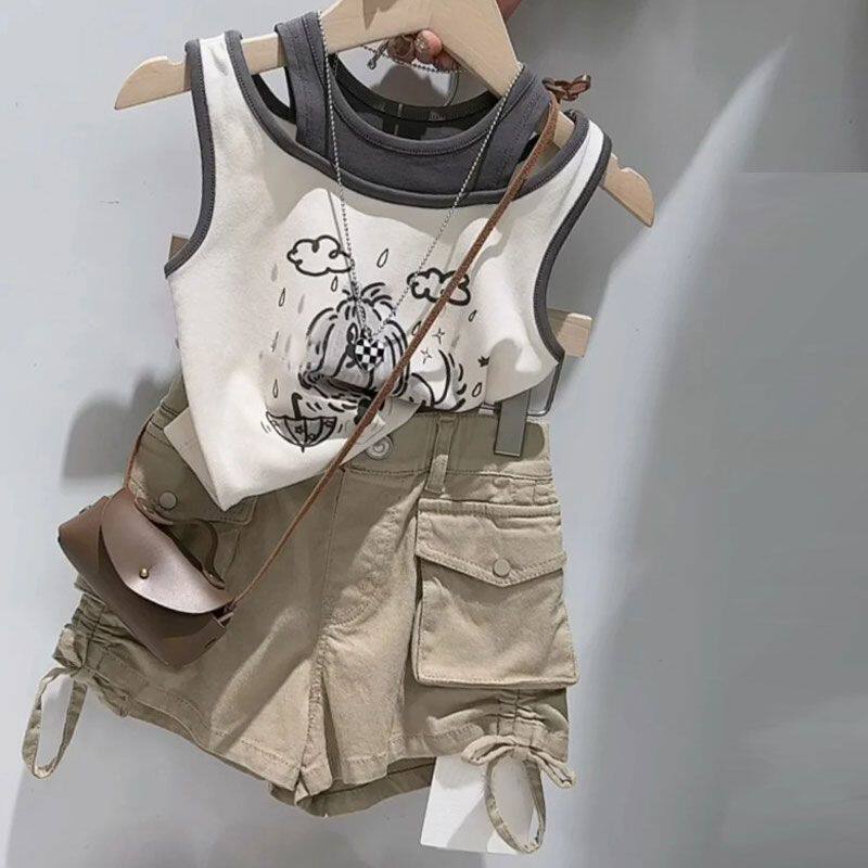Летний мультяшный комплект, майка топ, футболка, в корейском стиле, детская одежда, популярно в интернете