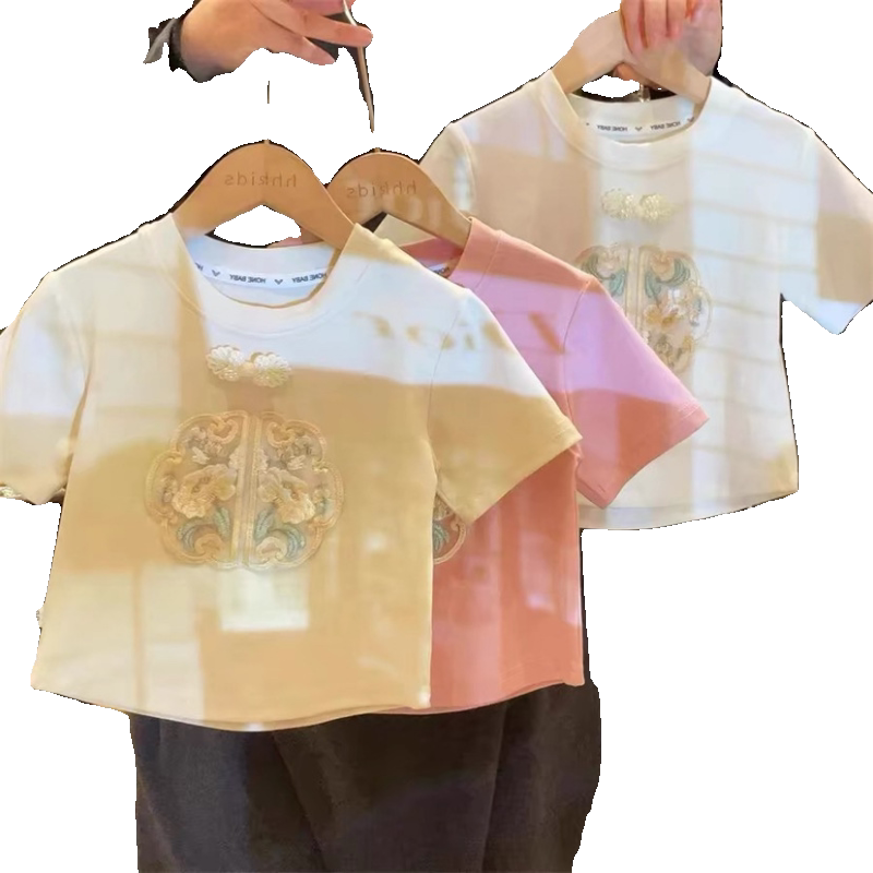 Летняя детская футболка с коротким рукавом, короткий рукав, в западном стиле, детская одежда, с вышивкой
