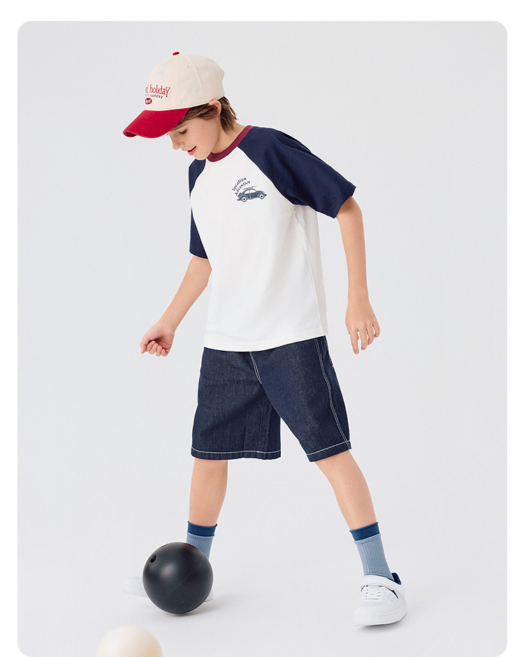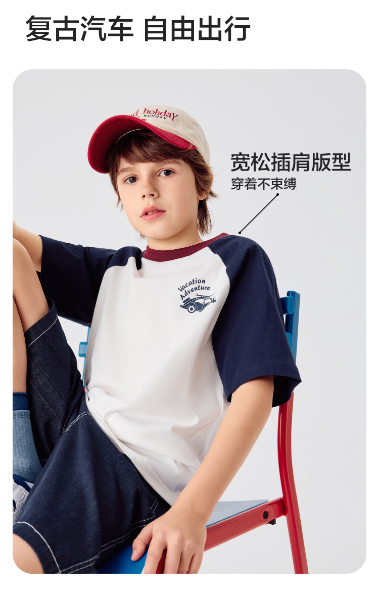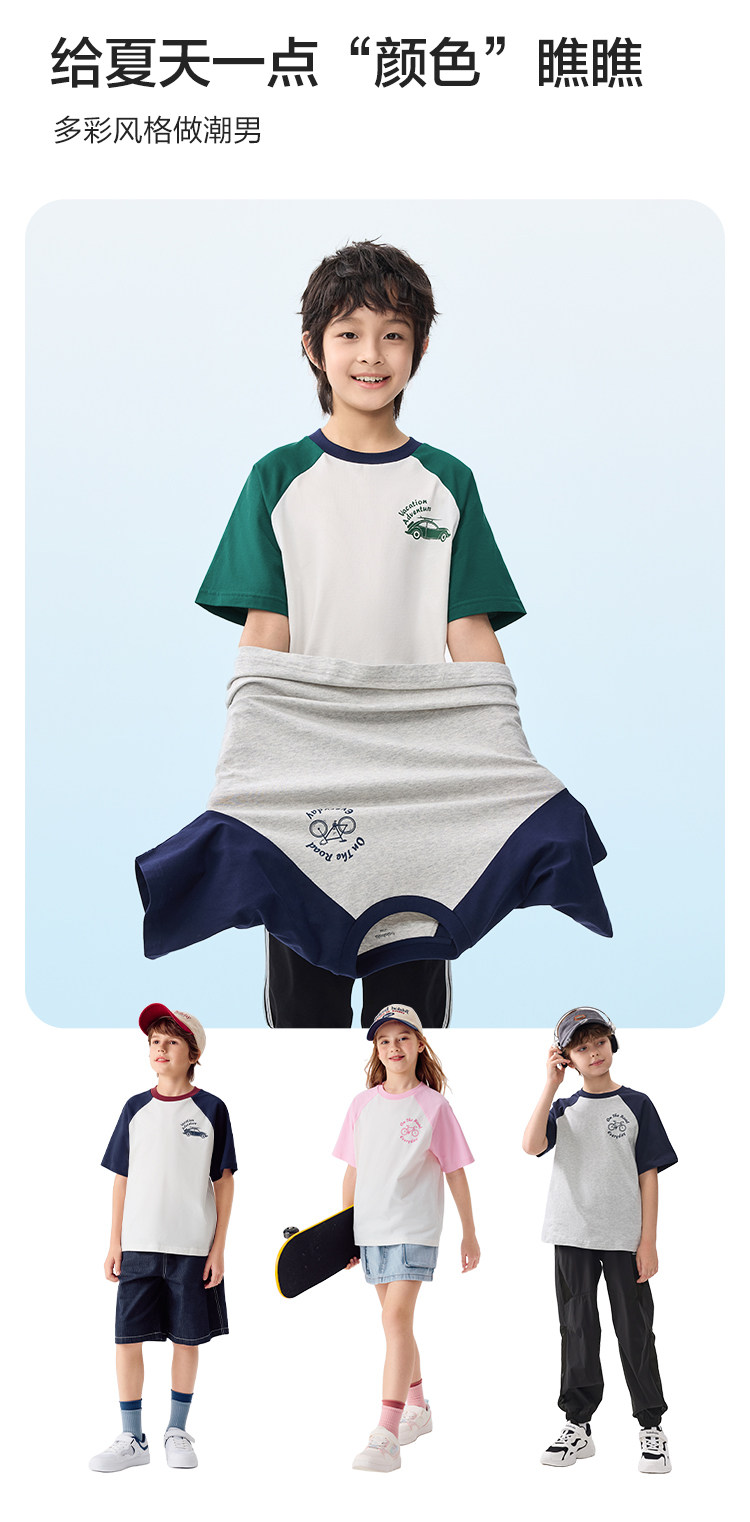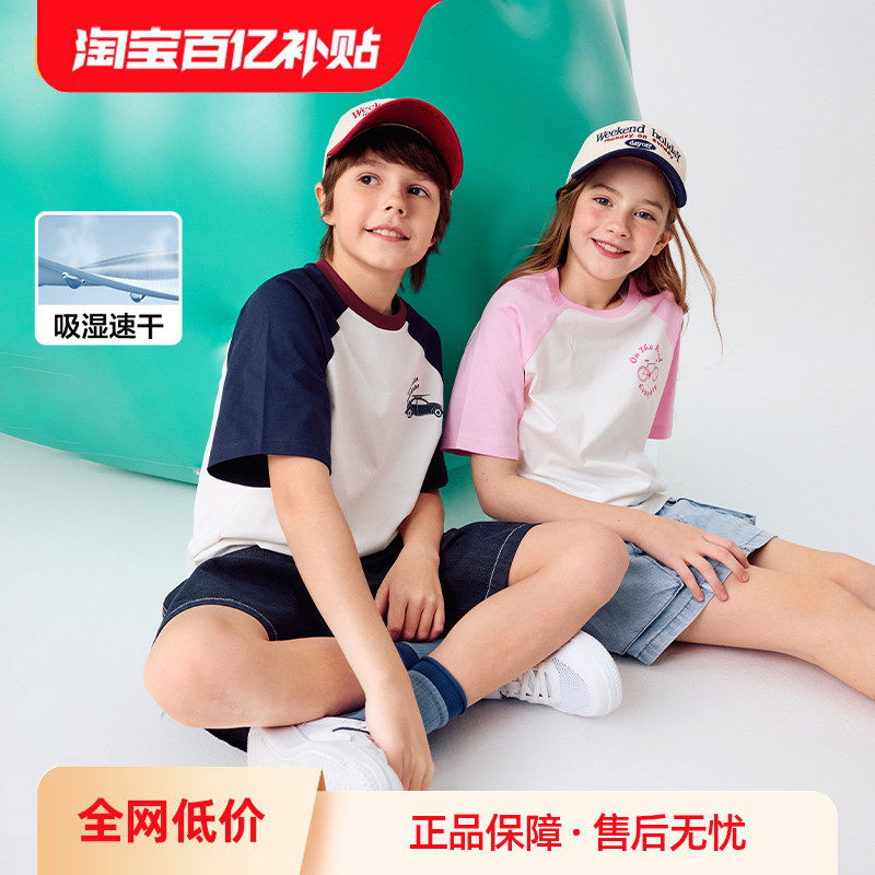 巴拉巴拉 Детская летняя быстросохнущая хлопковая футболка с коротким рукавом для мальчиков, детская одежда