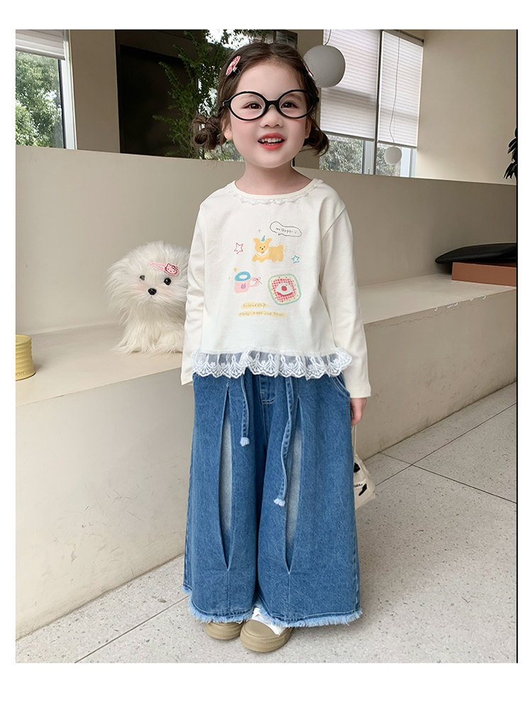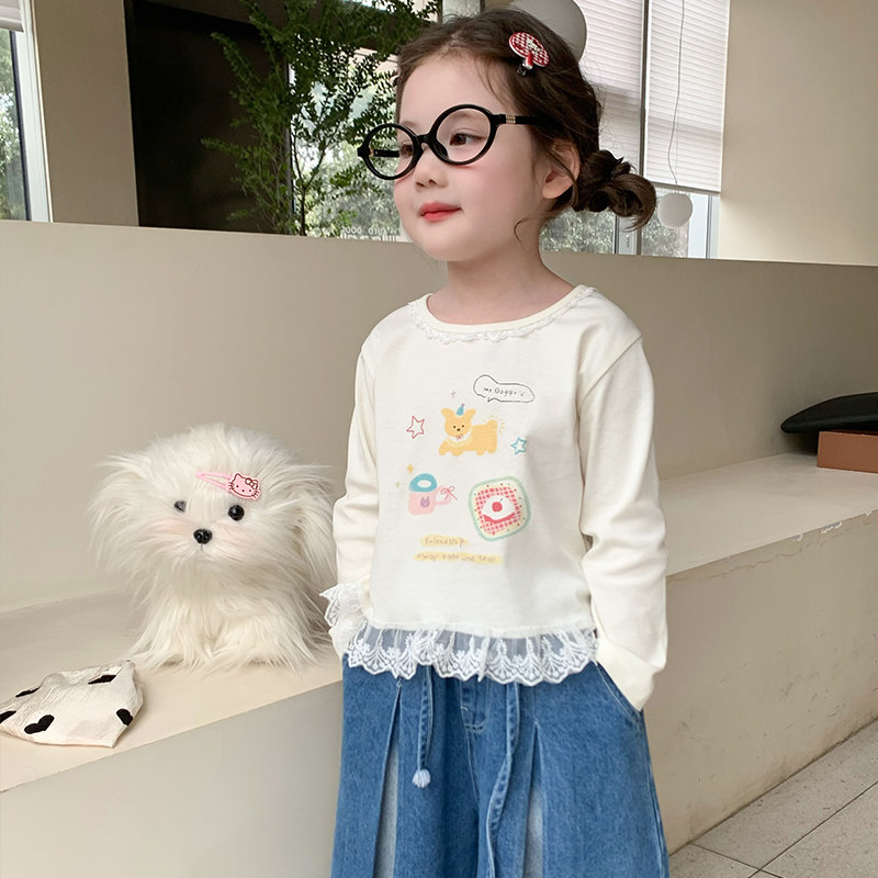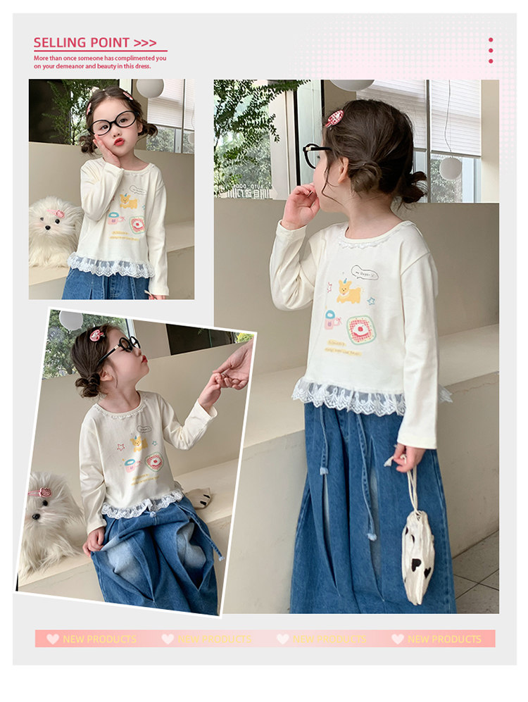Детская футболка, базовый приятный телу осенний весенний милый лонгслив, в западном стиле, детская одежда