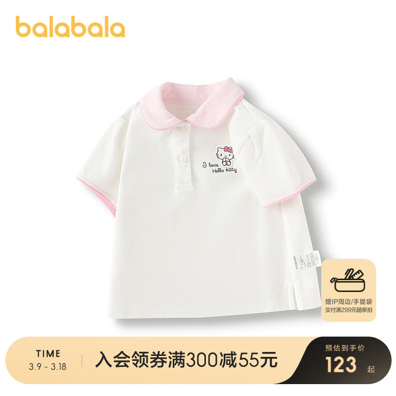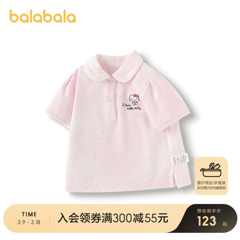 [HelloKittyIP Mall в том же стиле] Футболка с короткими рукавами Balabala для девочек, новая летняя рубашка ПОЛО 2025 года