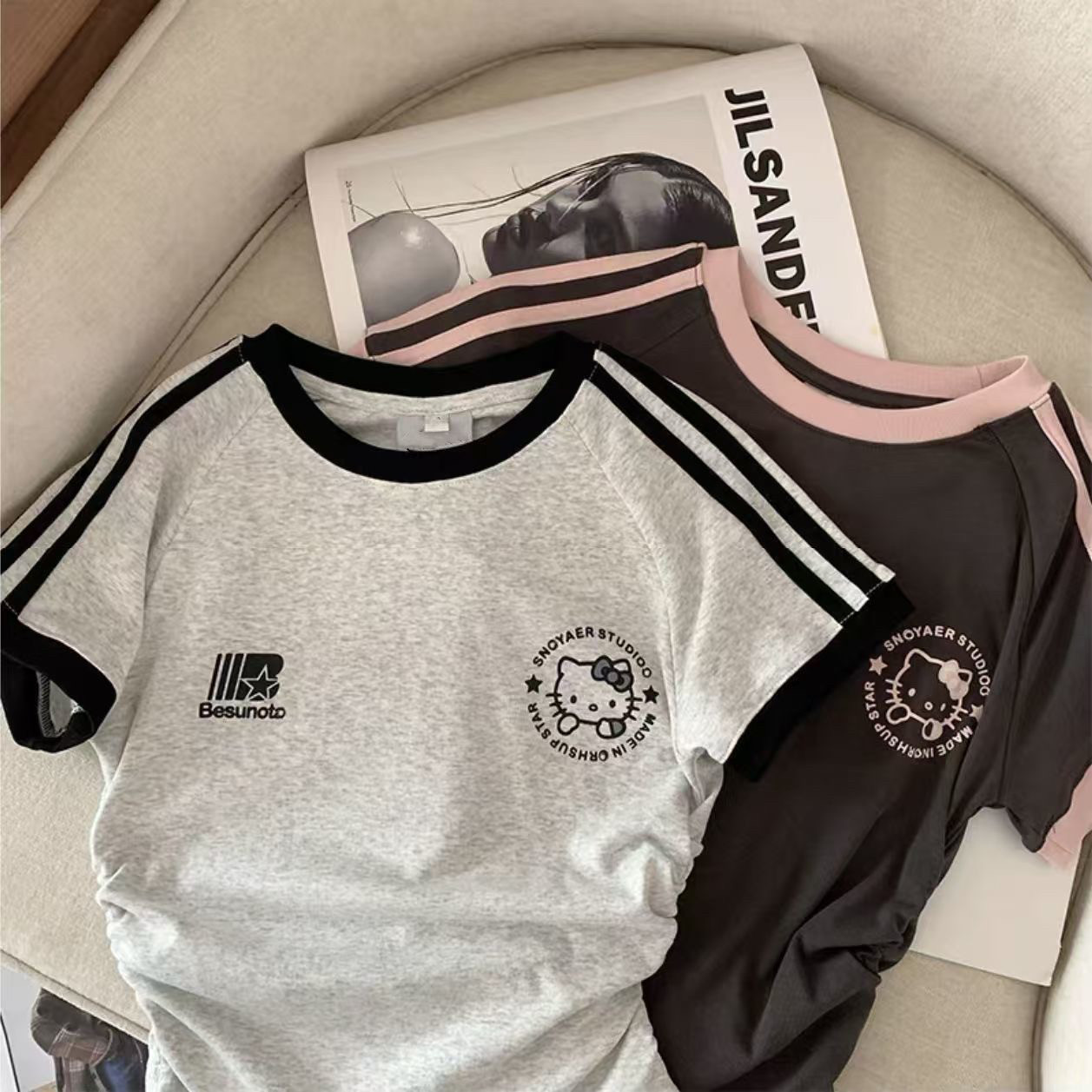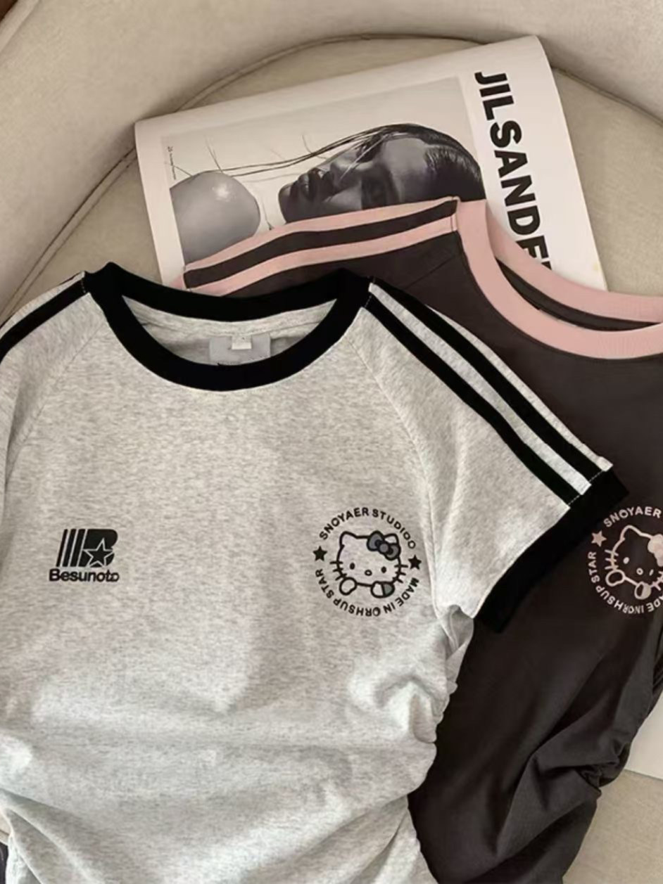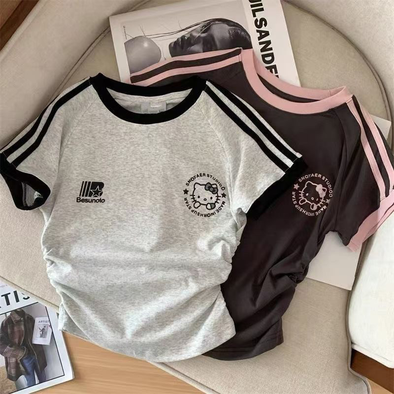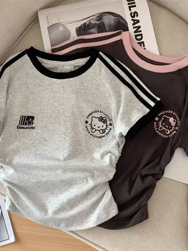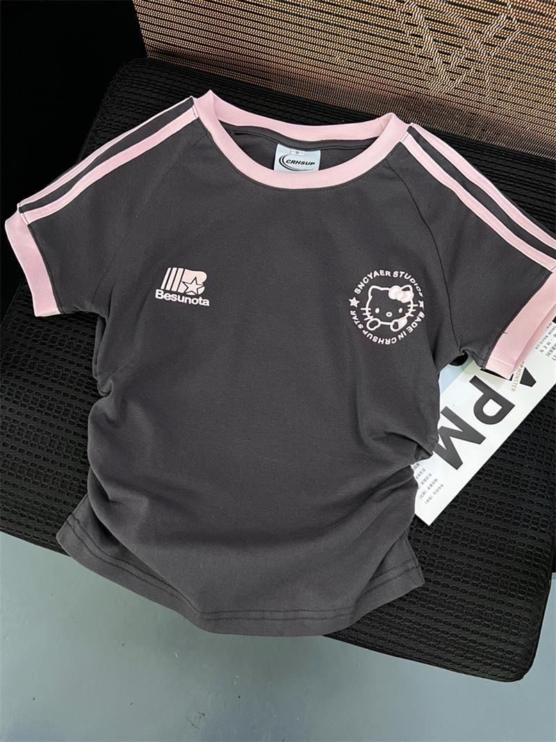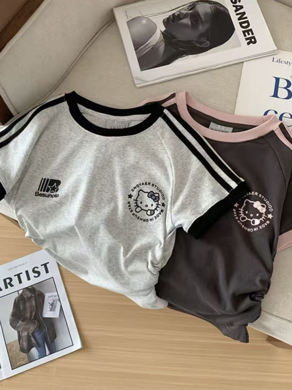 Хлопковая летняя мультяшная короткая футболка с коротким рукавом, семейный стиль, в американском стиле, в западном стиле