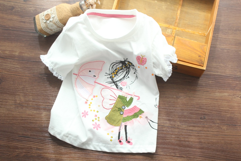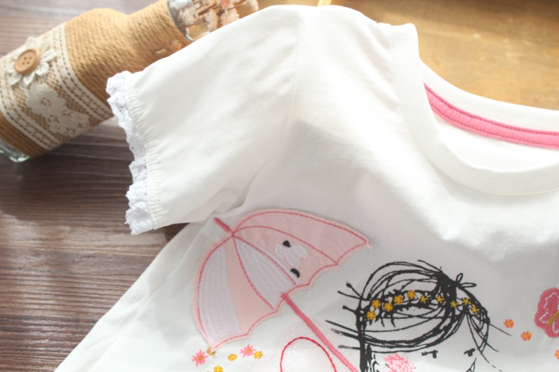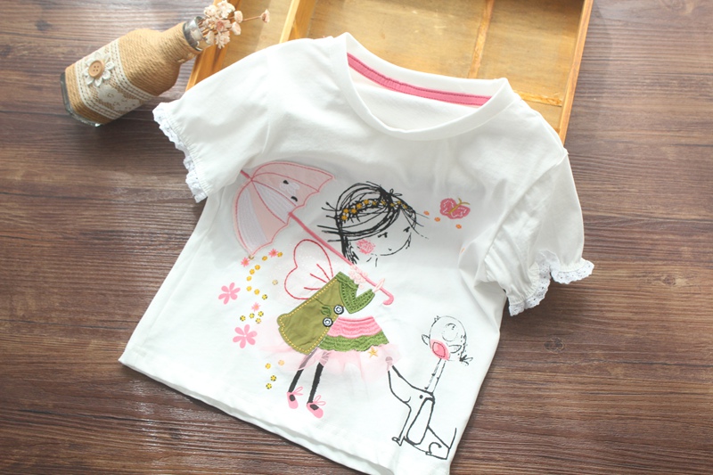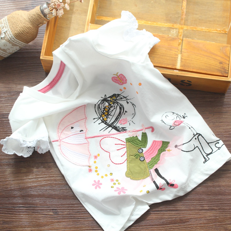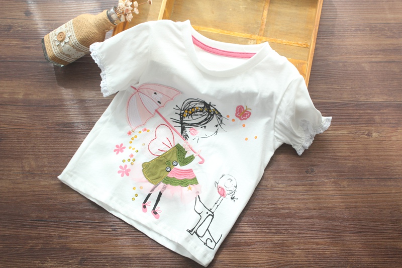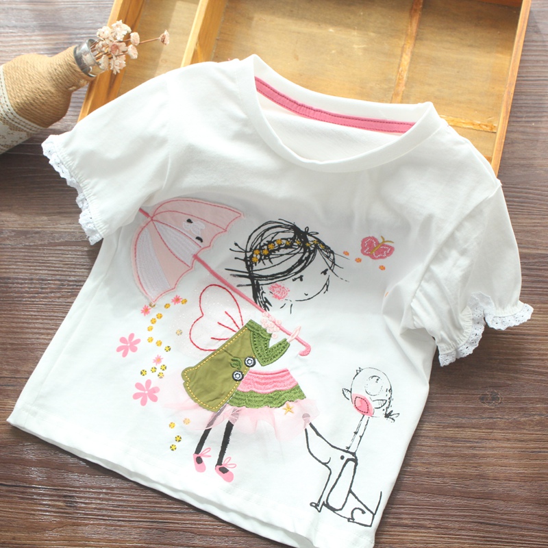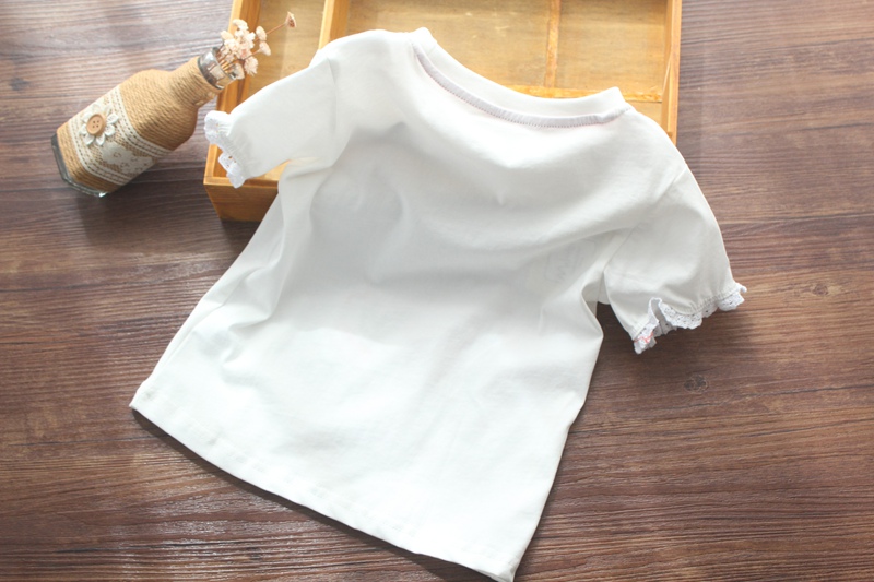 Футболка с коротким рукавом, милая детская летняя одежда, европейский стиль, круглый воротник, детская одежда