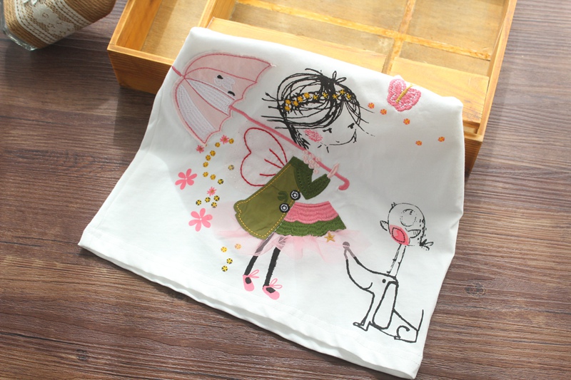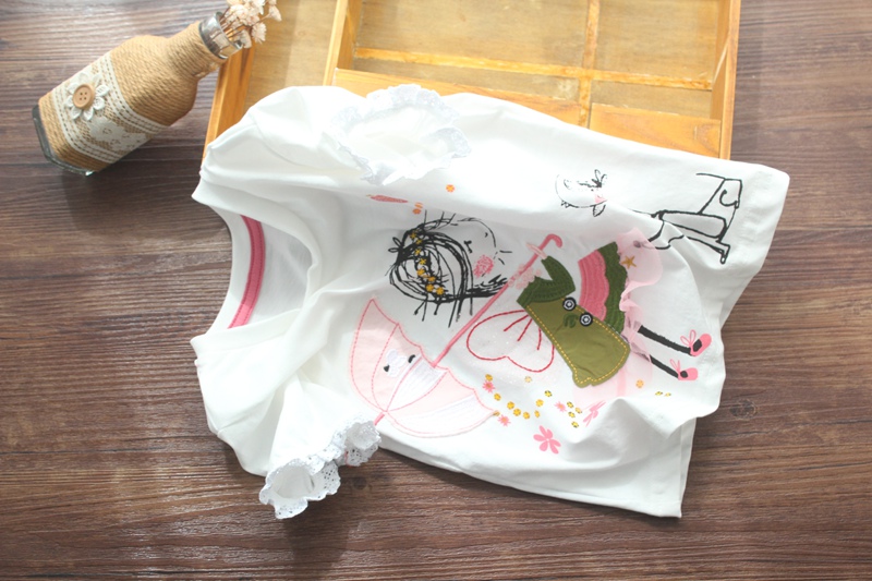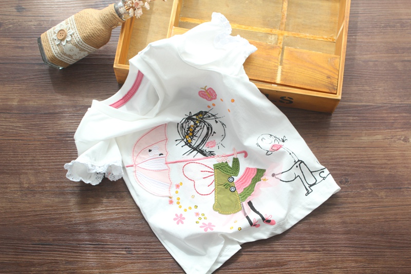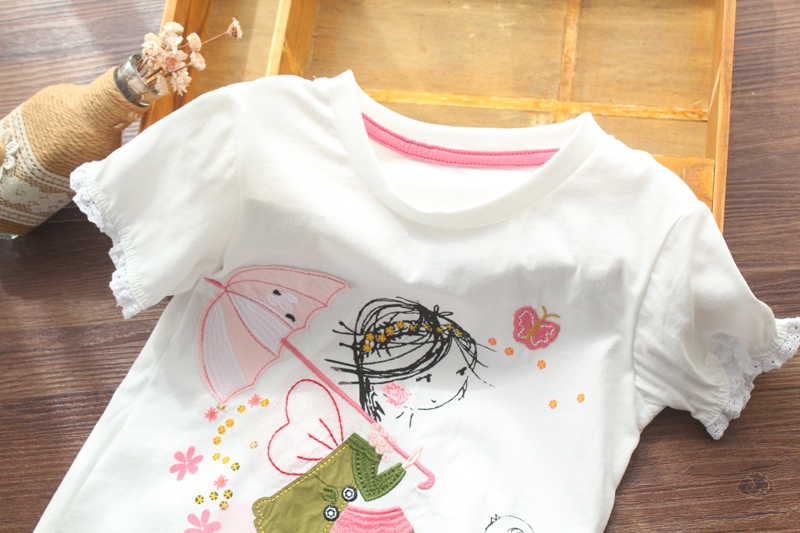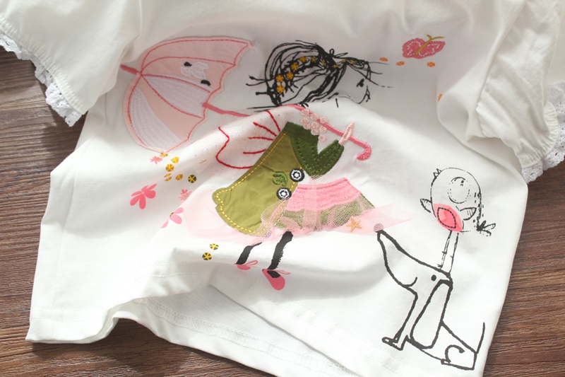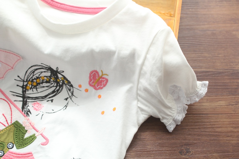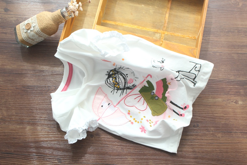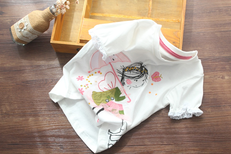 Футболка с коротким рукавом, милая детская летняя одежда, европейский стиль, круглый воротник, детская одежда