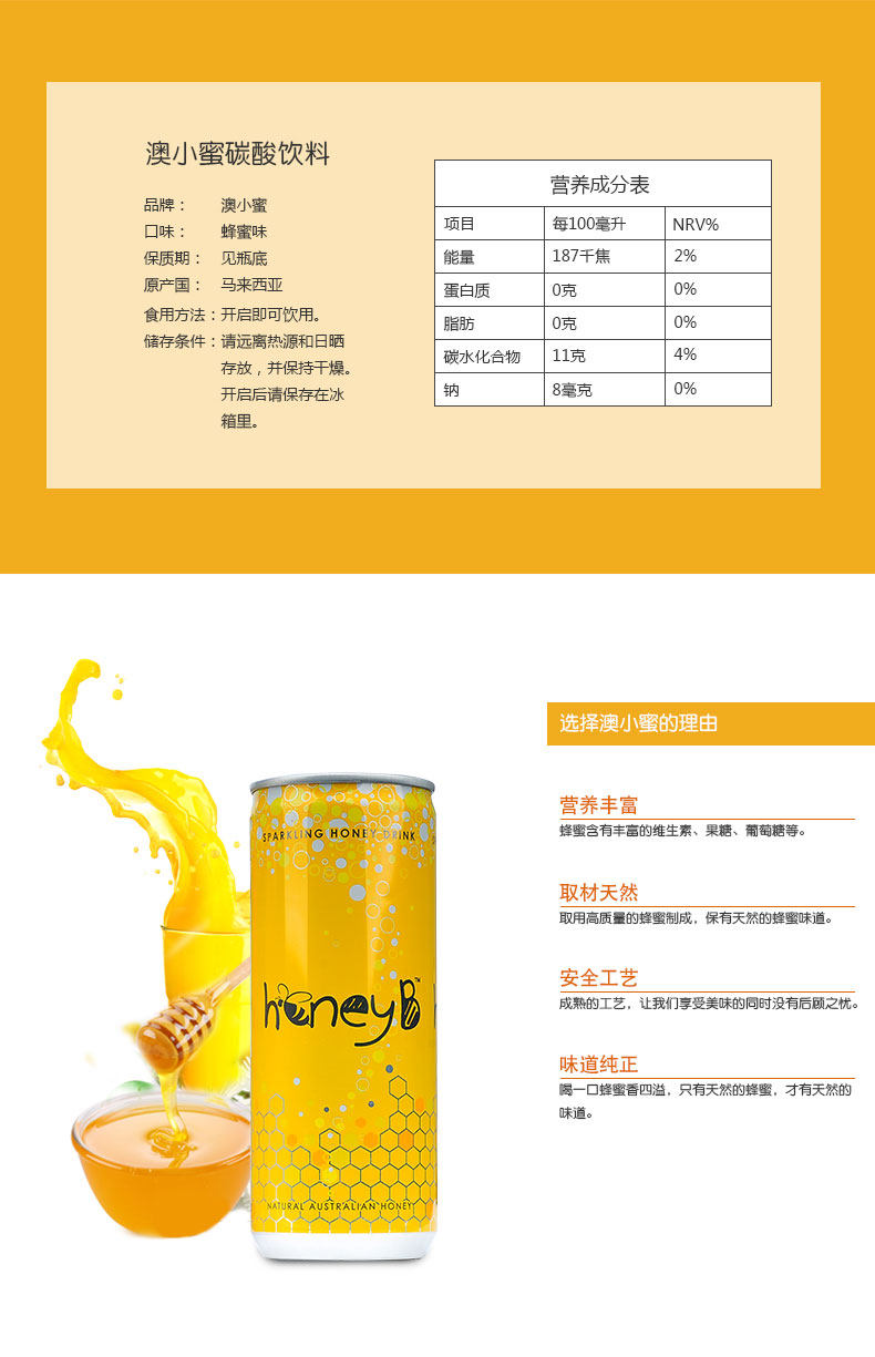 Австралийский медовый газированный напиток (медовый вкус) бутылка 250 мл на бутылку