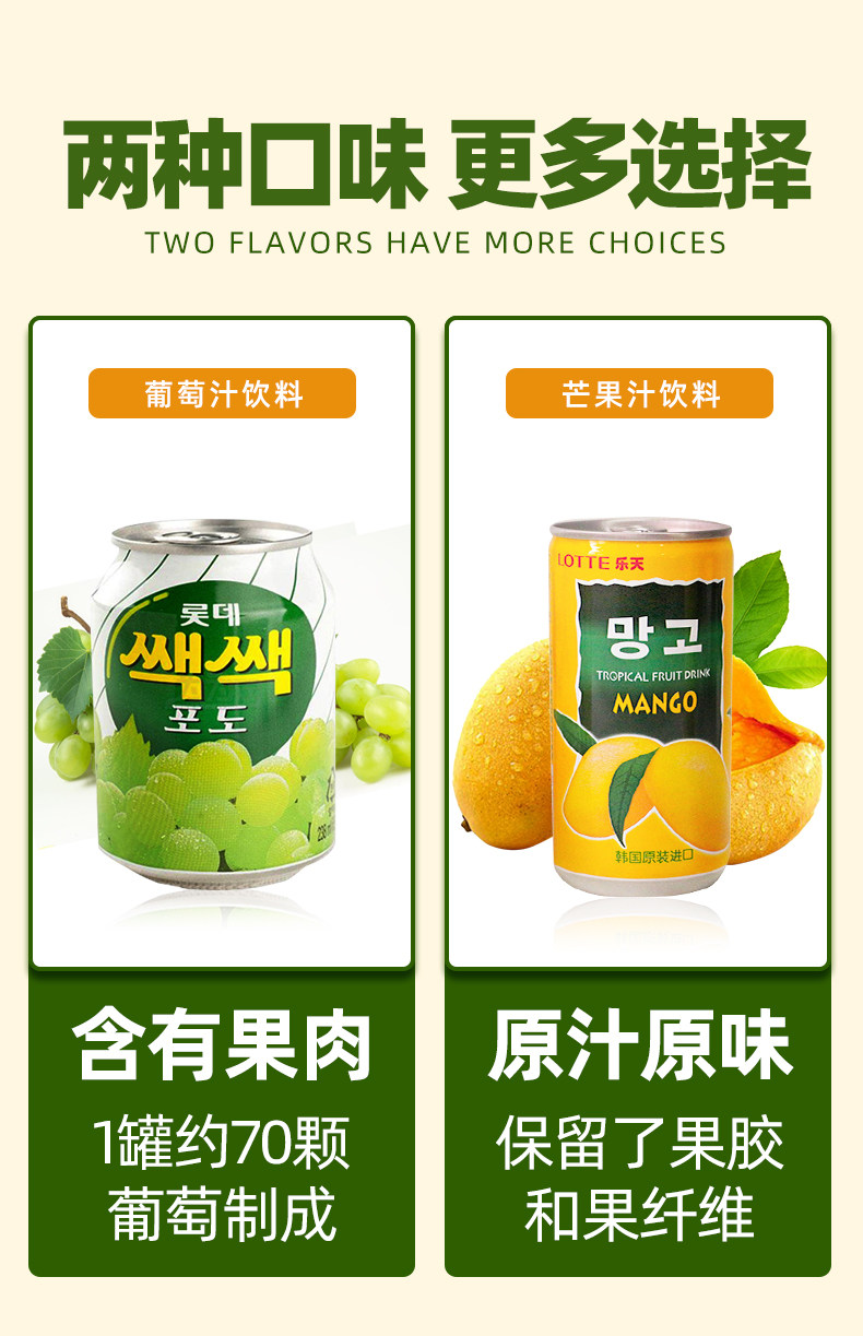Южная Корея импортировал лотте особняк сока сока, напитки с полным ящиком специальное предложение фруктовый сок подарочная коробка установленная банки для напитков для прослушивания 180 мл
