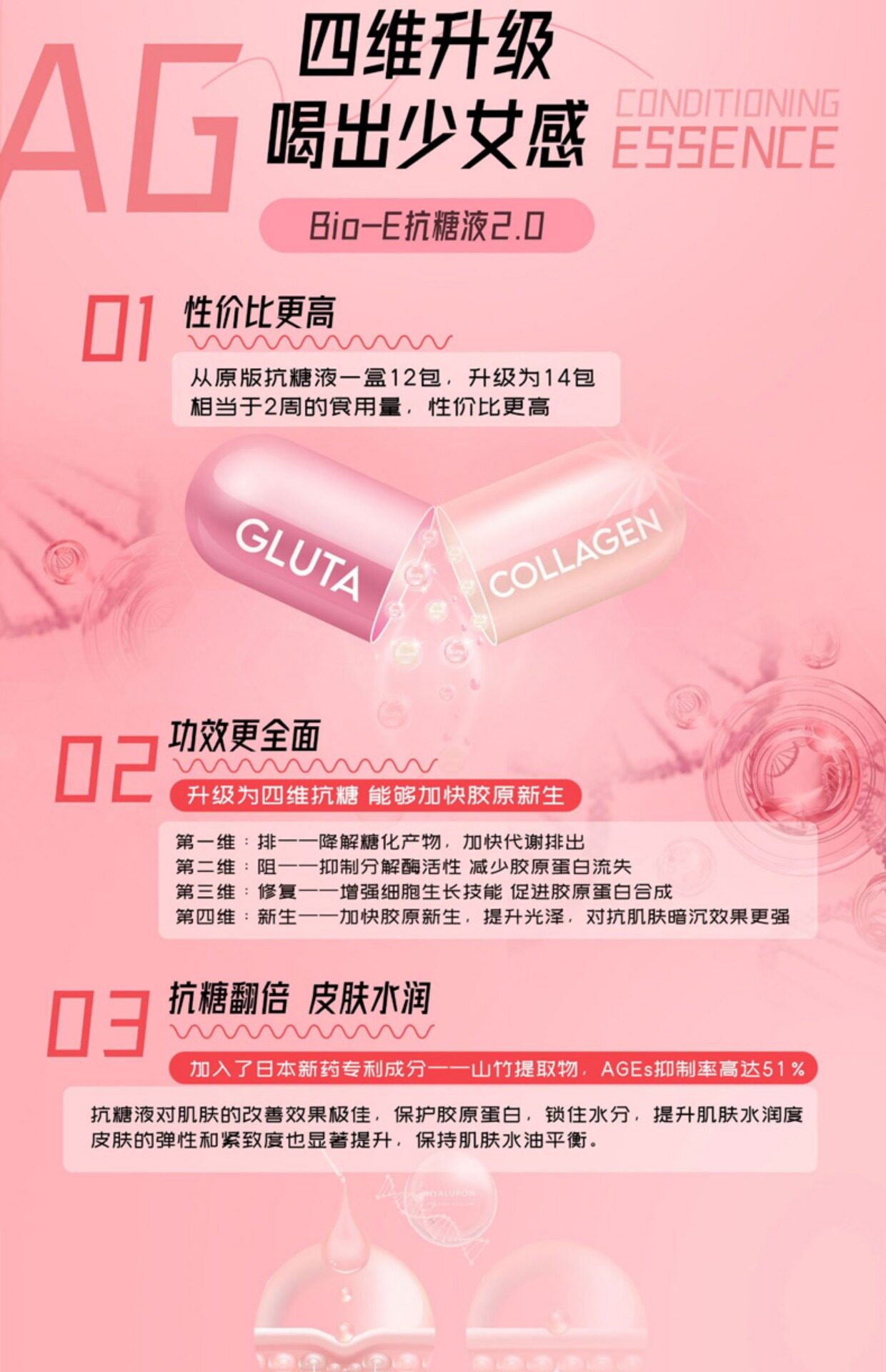 Австралийский биоэ новый четырехмерный анти -сугарный напиток пероральный раствор ухаживает за кожей чистые натуральные взрослые 14 мешков, чтобы противостоять старому