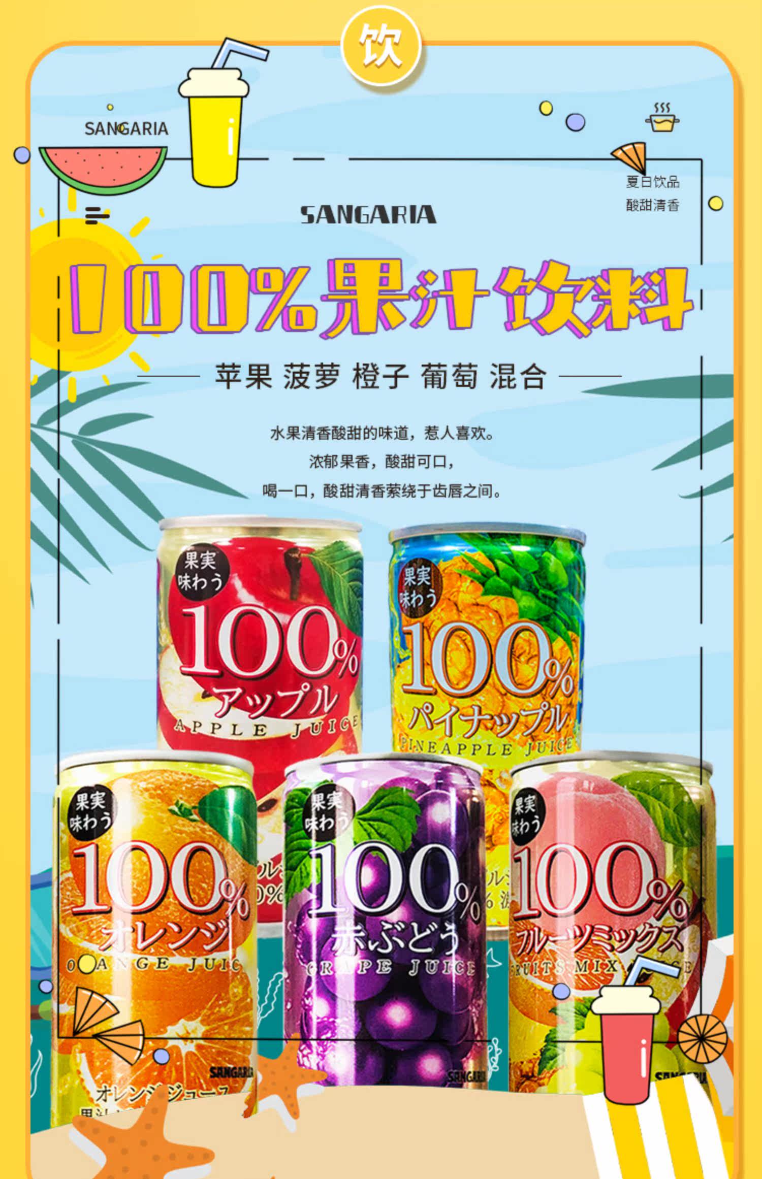 Оригинальный импортный сок JII в Японии 100%апельсиновый сок виноградный ананас напиток яблочный сок 190 г*3 бутылки
