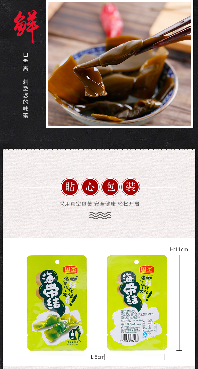 国圣 Водоросль связки вкуса горного перца 60 г*5 мешков с повседневными закусками.